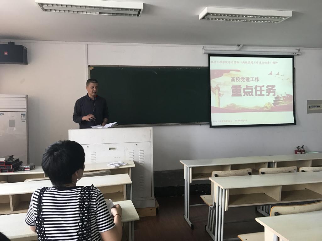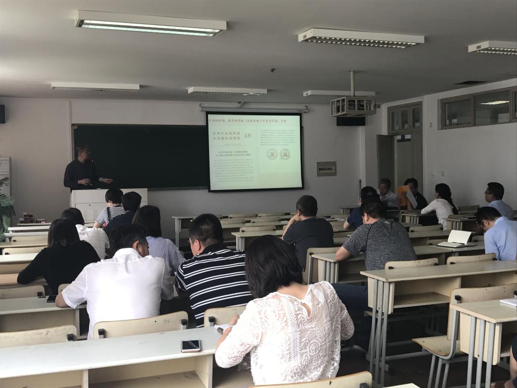 2018年6月6日下午,麻豆视频 党总支在6A503组织召开党员学习会——传达《高校党建工作重点任务》通知精神。麻豆视频 全体教工党员参加了学习会,党总支书记周荣主持学习。