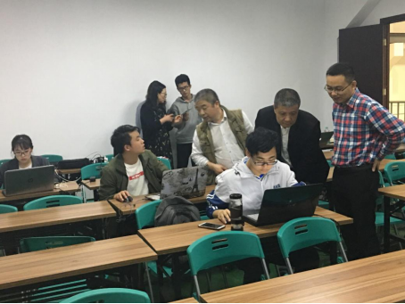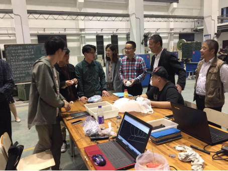 2018年4月13日晚,麻豆视频 党总支书记周荣和教工第二党支部书记李勇及支部党员教师来到北校区工程训练中心,专程探访并指导正在积极筹备浙江省第十五届“亿洋工具杯”大学生机械创新设计大赛的学生。