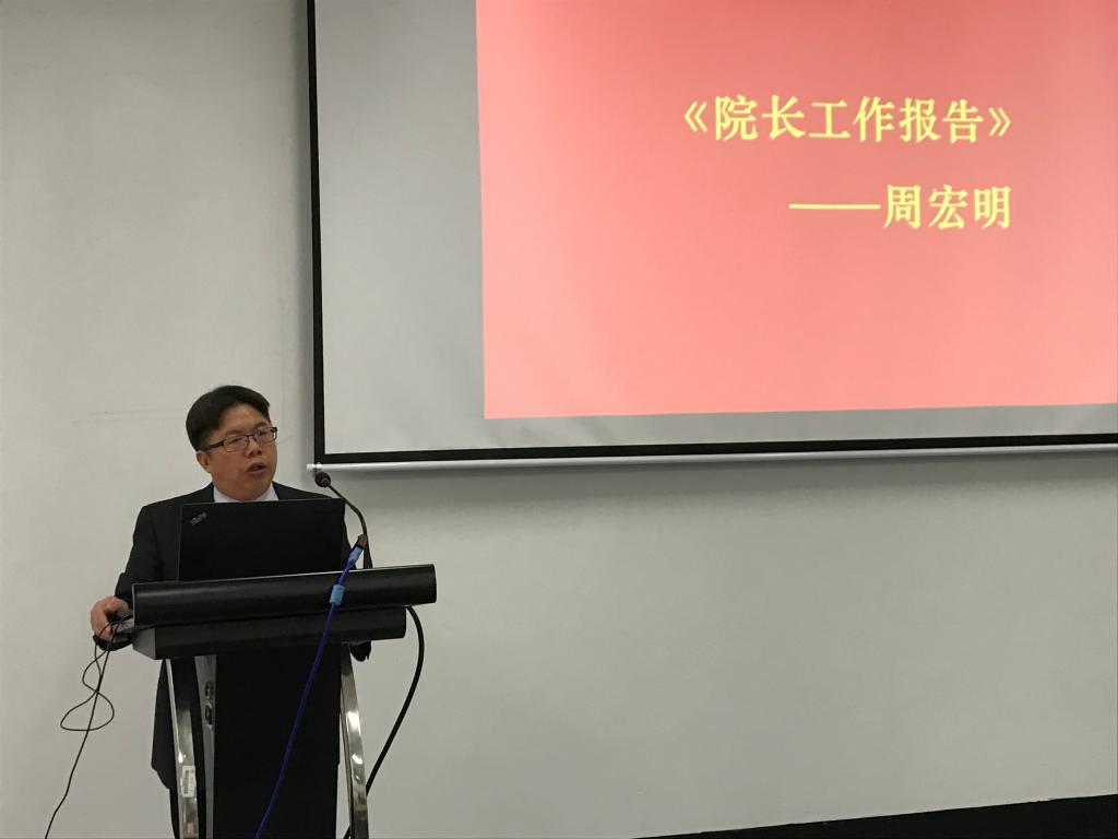 院长周宏明作《院长工作报告》。他表示,学院在学校党委、行政领导和各相关职能部门的支持下,根据麻豆视频 “十三五”规划的总体思路和本年度学校工作总体部署,扎实推进专业建设与人才培养、学科建设与科学研究、师资队伍建设、党建与学生工作等各方面工作都取得了丰硕的成果,通过了机械工程专业认证,获批机械工程一级硕士点,教学、学科科研考核为双A(优),研究院建设步入正轨并取得很好的成绩,这些都成绩的取得与全院教职工的积极进取、不懈努力是分不开的,也期望大家能更好地投入到下一阶段麻豆视频 建设的各项事业中去。