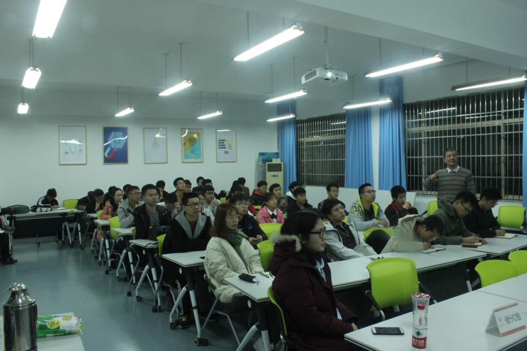 首项议程,全体起立,奏唱共青团团歌。歌声落定,主持人宣布主讲人周荣书记展开此次讲座。赢得了在场全体成员的热烈掌声。