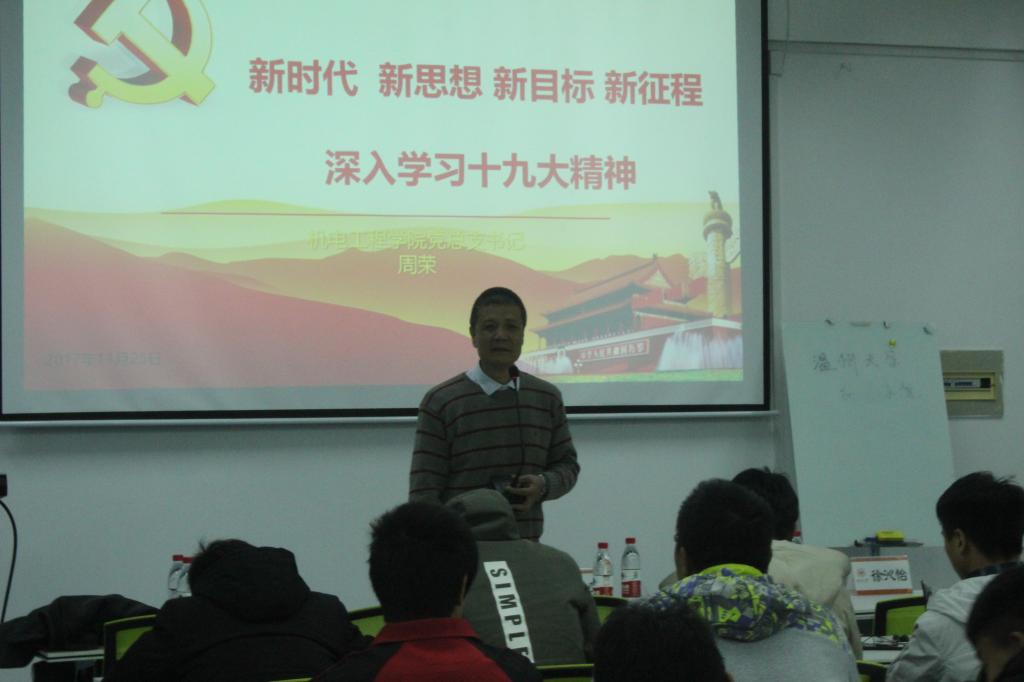 12月7日下午六点半,由麻豆视频-免费麻豆视频-台湾麻豆影片 团委学生会主办的“深入学习十九大精神”主题讲座于麻豆视频 B201展开,出席本次讲座的嘉宾有麻豆视频 党总支书记周荣,辅导员徐沁怡以及团委学生会全体成员。