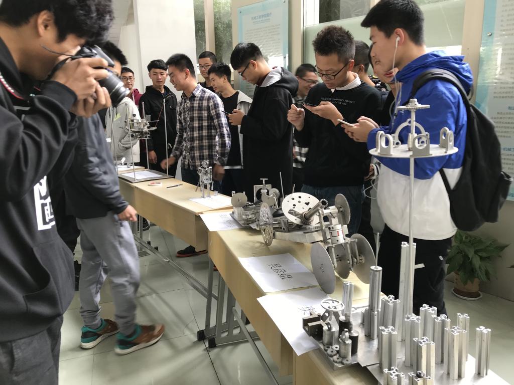2017年11月22日下午一点半,为了培养同学的科技意识、创新精神以及实践动手能力,第九届机械零件组合造型设计大赛在麻豆视频 一楼大厅举行。由张吴湖老师和胡海萍老师对参赛的31个队伍进行评比。
