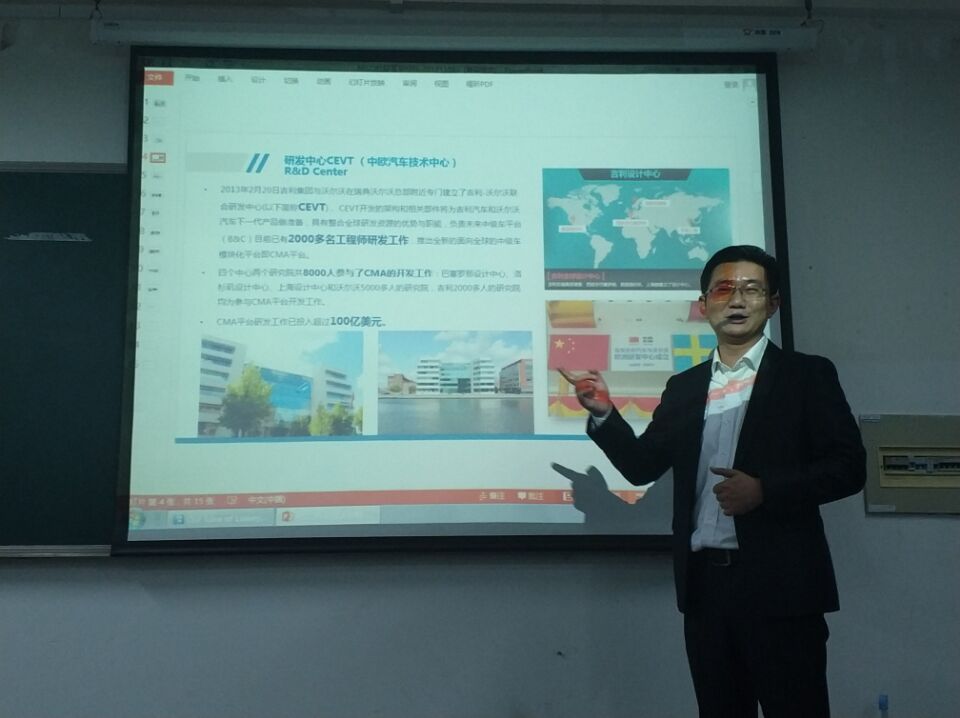 基于同学们对就业形势了解不充分的现状,崔杰经理首先点明了目前汽车行业竞争十分激烈的形势,并告诉同学们,在这种优胜劣汰竞争残酷的大环境下,大家只有不断努力钻研,不断更新领域内的知识体系,不断提高自己的专业技术水平,持续强化自我才能把握就业先机。紧接着,崔经理向同学们具体讲述了吉利汽车及相关制造业的技术研发方向、供给策改革后的销售前景。为了吸引同学的到来,崔经理介绍了公司在台州厂区所具有的优越技术条件与就业环境,在介绍企业的同时崔经理也为大家讲解了国家的相关扶持政策。台下的同学们认真地听着,时不时做些笔记,崔经理也不时地停下讲话,贴心得询问同学们是否存在疑惑,并对同学们提出的问题进行了耐心地解答。在接下来的环节中,崔经理让助理介绍了公司的培训生制度和工作的主要类别。助理特别突出讲解培训生制度为同学们在毕业前或就业起步阶段所提供重要作用,同学们听后兴趣十足。