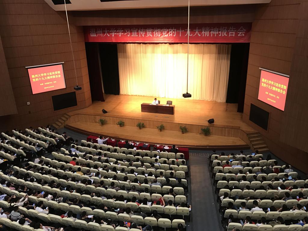 张耕指出,党的十九大是在全面建成小康社会决胜阶段、中国特色社会主义进入新时代的关键时期召开的一次十分重要的大会,要深刻领会和准确把握十九大精神,迅速掀起学习贯彻十九大精神热潮,扎实推进新时代中国特色社会主义在温州、在高校的生动实践。他结合温州发展情况,对十九大报告提出的新变革、新时代、新矛盾、新思想、新举措、新使命、新征程、新部署、新气象进行详细深入解读。