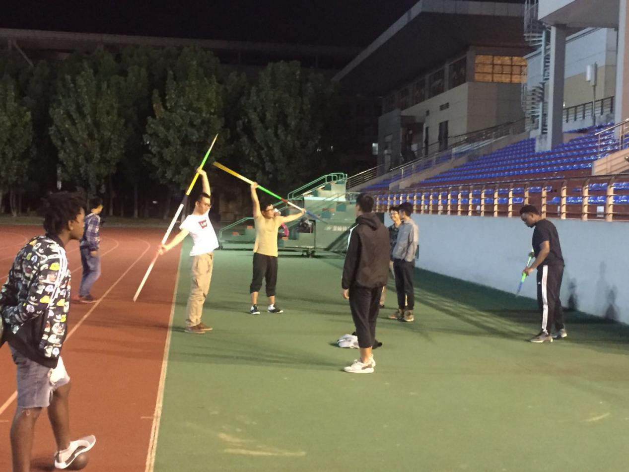 在体育麻豆视频 教练的指导下,同学们积极投身于标枪训练前的热身活动中。