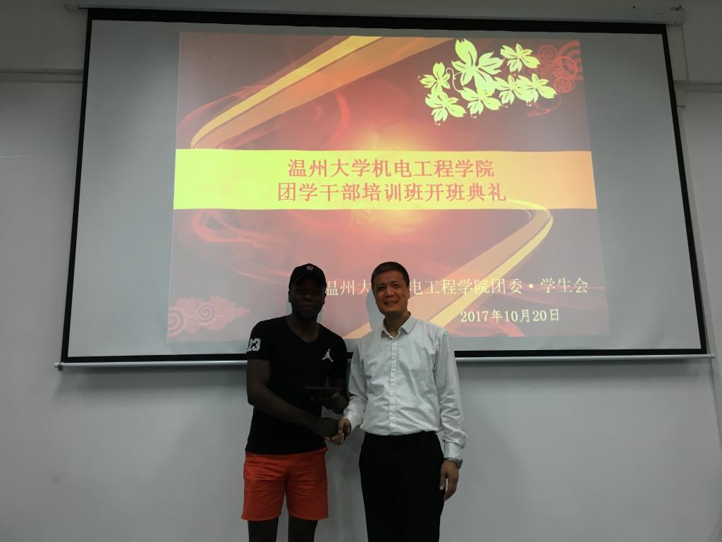 在开班之前,麻豆视频-免费麻豆视频-台湾麻豆影片 党总支书记周荣为来自津巴布韦的文体部名誉部长Alfred颁发了聘书。