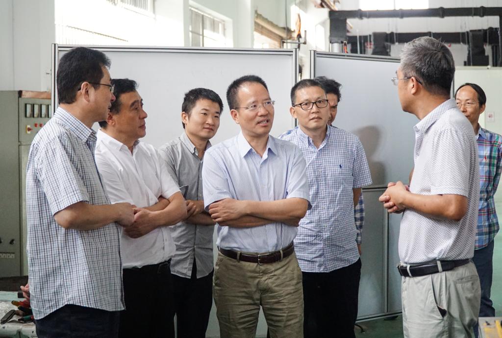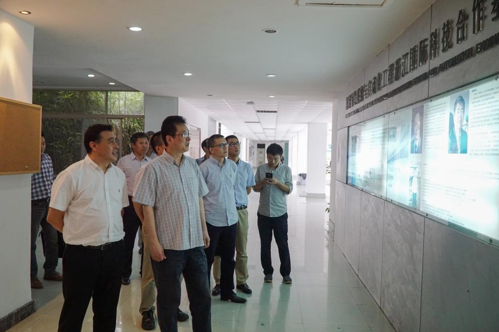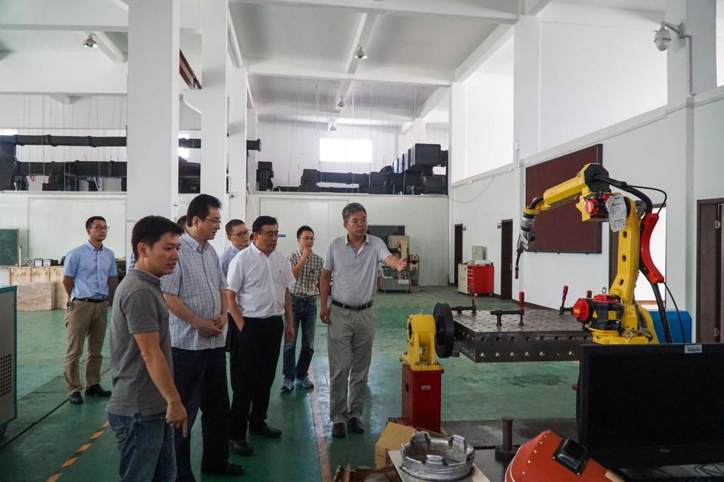 10月11日,省科技厅副厅长王坚一行莅临麻豆视频 调研激光加工机器人国家级国际科技合作基地。温州市科技局副局长朱勇敏陪同调研。