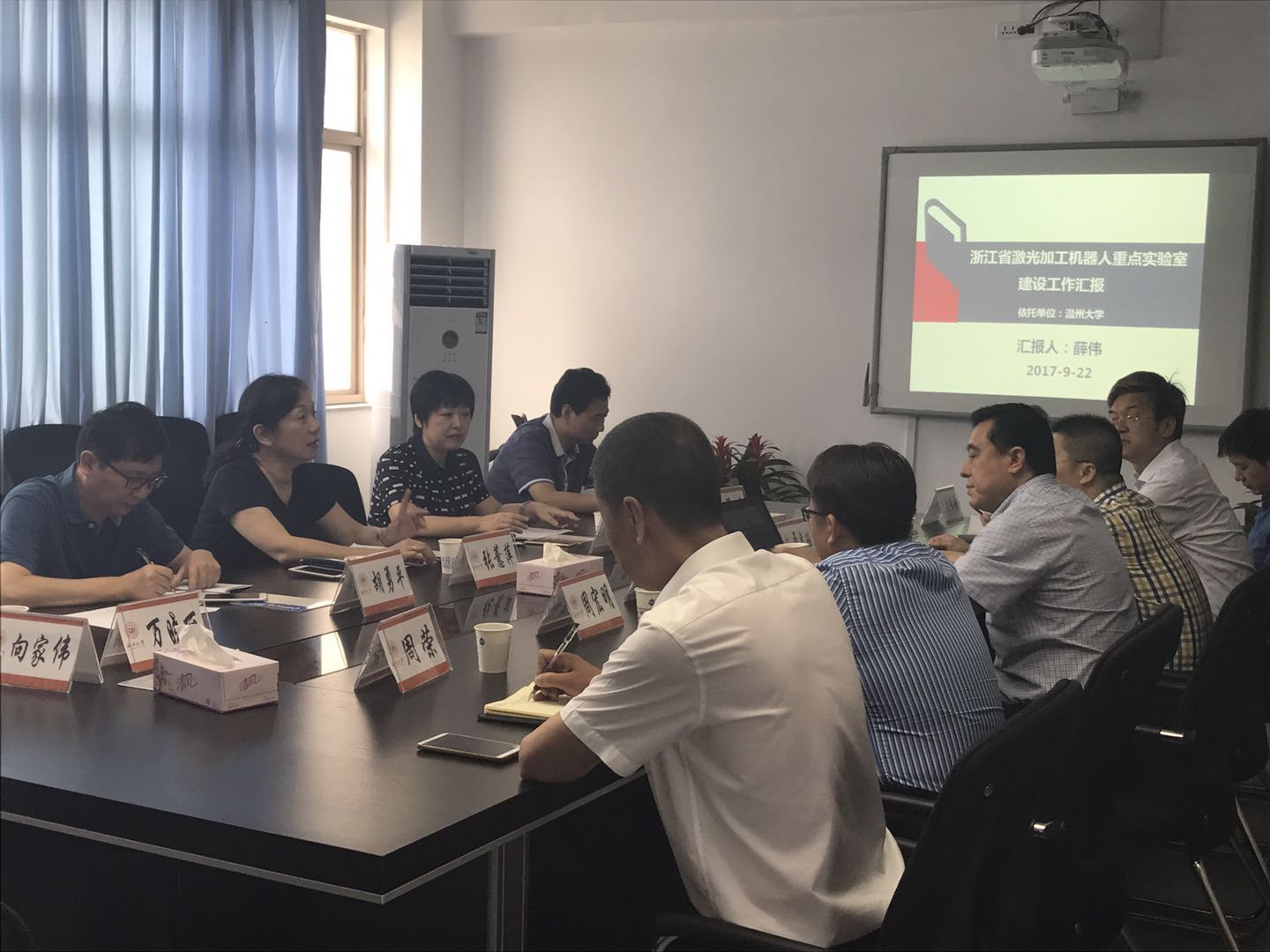 2017 年9月22日上午9:00,浙江省科技厅组织专家组一行五人对省科技厅于2015年4月批准的浙江省激光加工机器人重点实验室进行了检查验收。温州大学副校长、实验室主任薛伟汇报了近两年来实验室的建设工作,专家组审查了相关材料,并对实验室进行了实地考察,通过充分讨论后认为经过两年多努力,该实验室的硬件建设、人才队伍建设、资金投入等各项建设工作取得了一定的成绩,已经达到了预定目标,专家组一致评定,浙江省激光加工攻机器人重点实验室顺利通过省科技厅的验收。