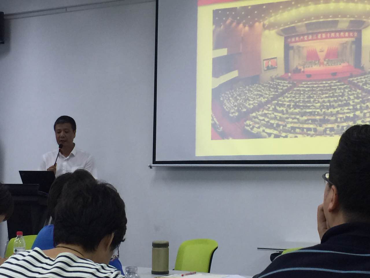 会议第二阶段,周荣书记传达学习省第十四次党代会精神。周荣书记对省第十四次党代会的基本情况作了介绍,传达了本次党代会的主要精神,阐释了“一条主线、两个高水平、三个时期、四个强省、五个必须、六个浙江、七个着力、八项主要任务”的深刻内涵,对报告中关于温州发展提出的四个希望进行了解读,着重就报告中提出的关于我省高等教育创新发展的所面临的形势与问题提出了认识与思考,同时也对高等教育强省战略中的“温大篇”进行了解析。