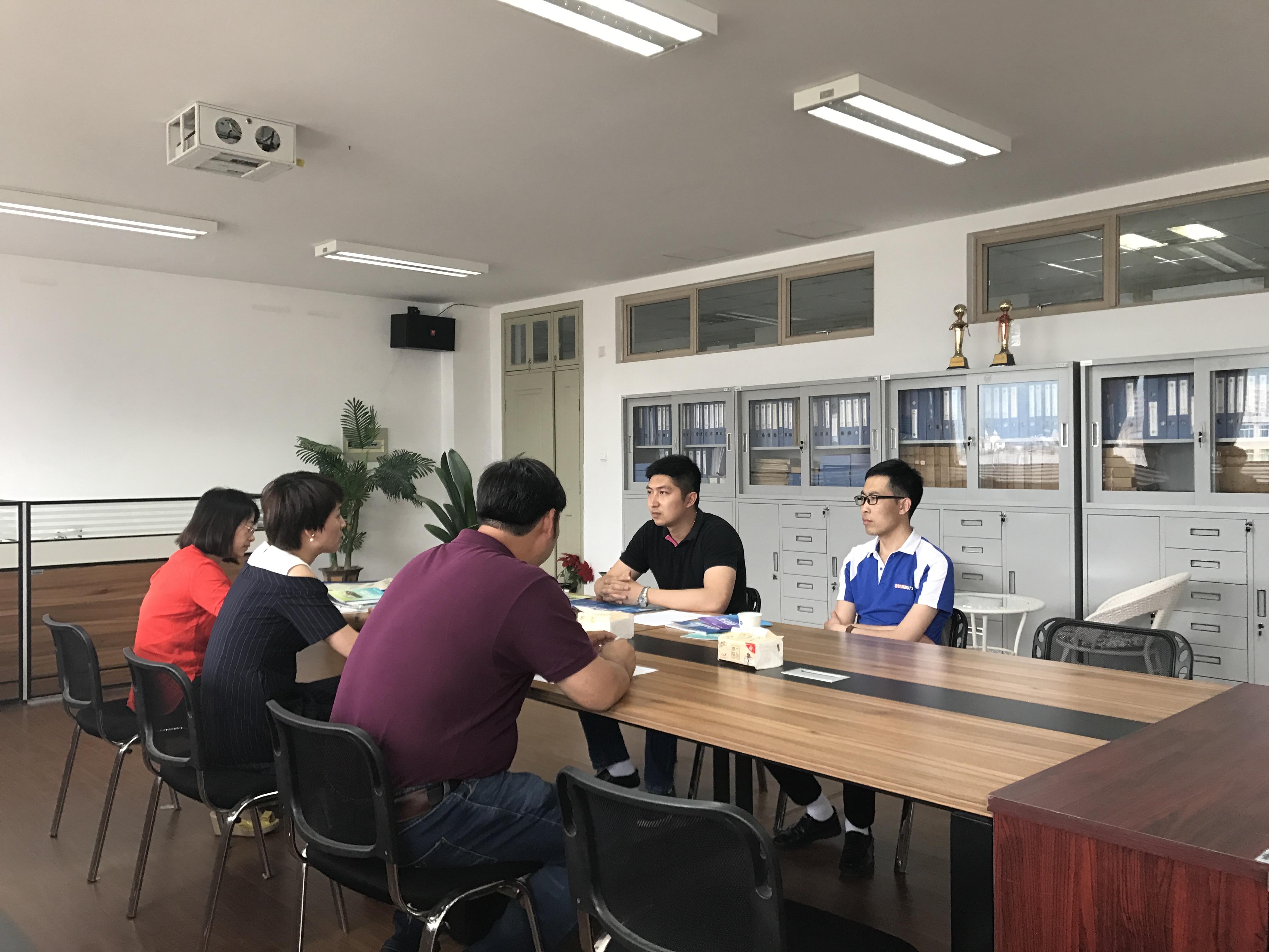 会上,滕副总先向麻豆视频-免费麻豆视频-台湾麻豆影片 介绍了企业概况、人才需求,希望能双方开展长期合作,欢迎机电学生到企业实习实践,同时希望能利用温州大学机电麻豆视频 人才智力优势和科研资源优势,提升企业技术和理念、管理技巧、生产工艺等,解决企业研发和生产中的实际问题,促进企业转型升级。李密书记和姜锐老师则向对方介绍了麻豆视频-免费麻豆视频-台湾麻豆影片 人才培养模式、学生科技创新成果、学生就业方向等。双方就学生实习实践、招聘就业、企业培训等达成初步合作意向,并决定开展进一步的深入合作。