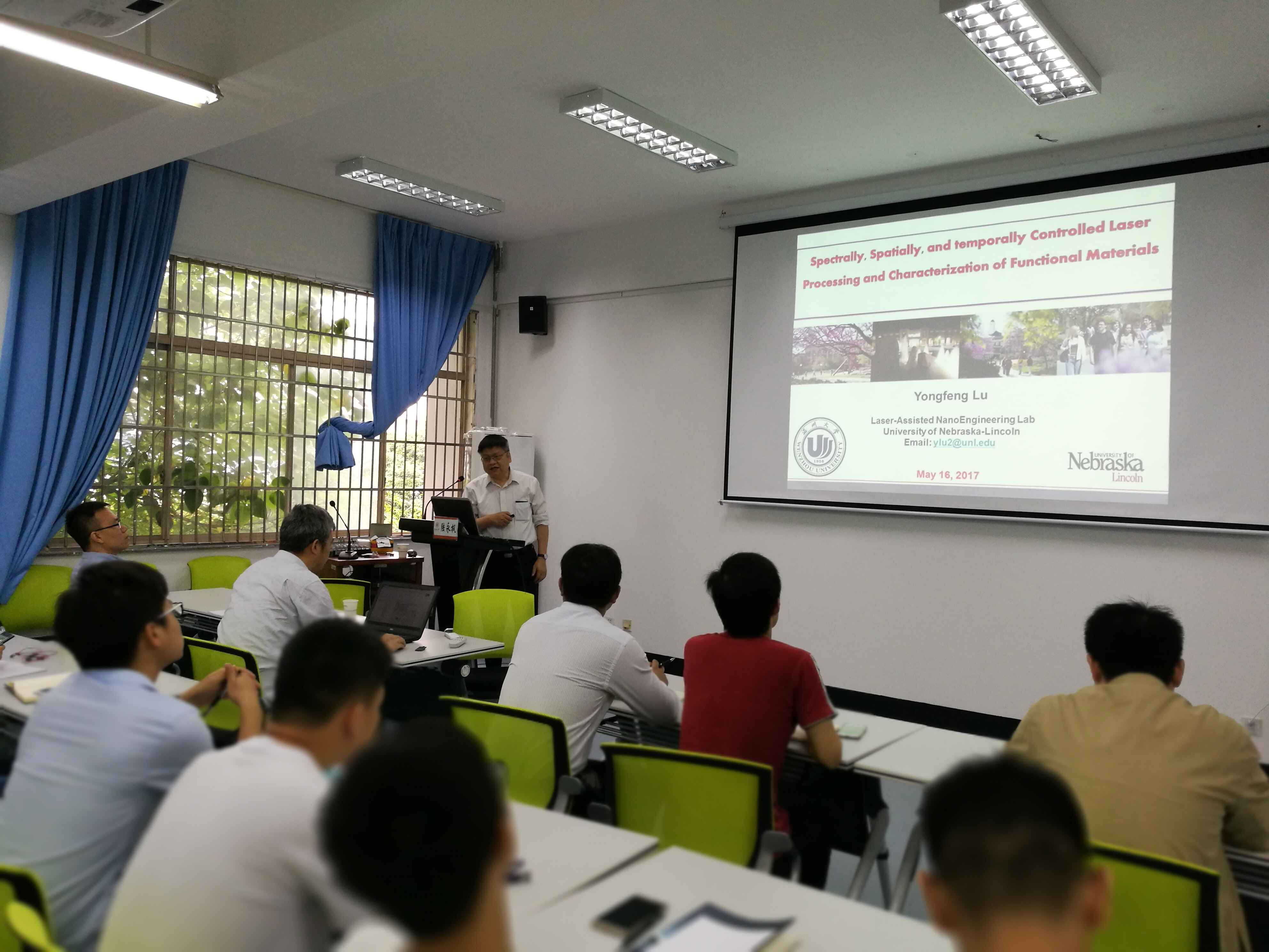 2017年5月16日上午,激光精密微细加工技术学术研讨会在机电楼B201室隆重召开。出席本次讲座的嘉宾有内布拉斯加大学林肯分校教授陆永枫老师、麻豆视频 院长冯爱新老师以及相关专业的老师。机电麻豆视频 全体研究生共同参加了本次学术讲座。