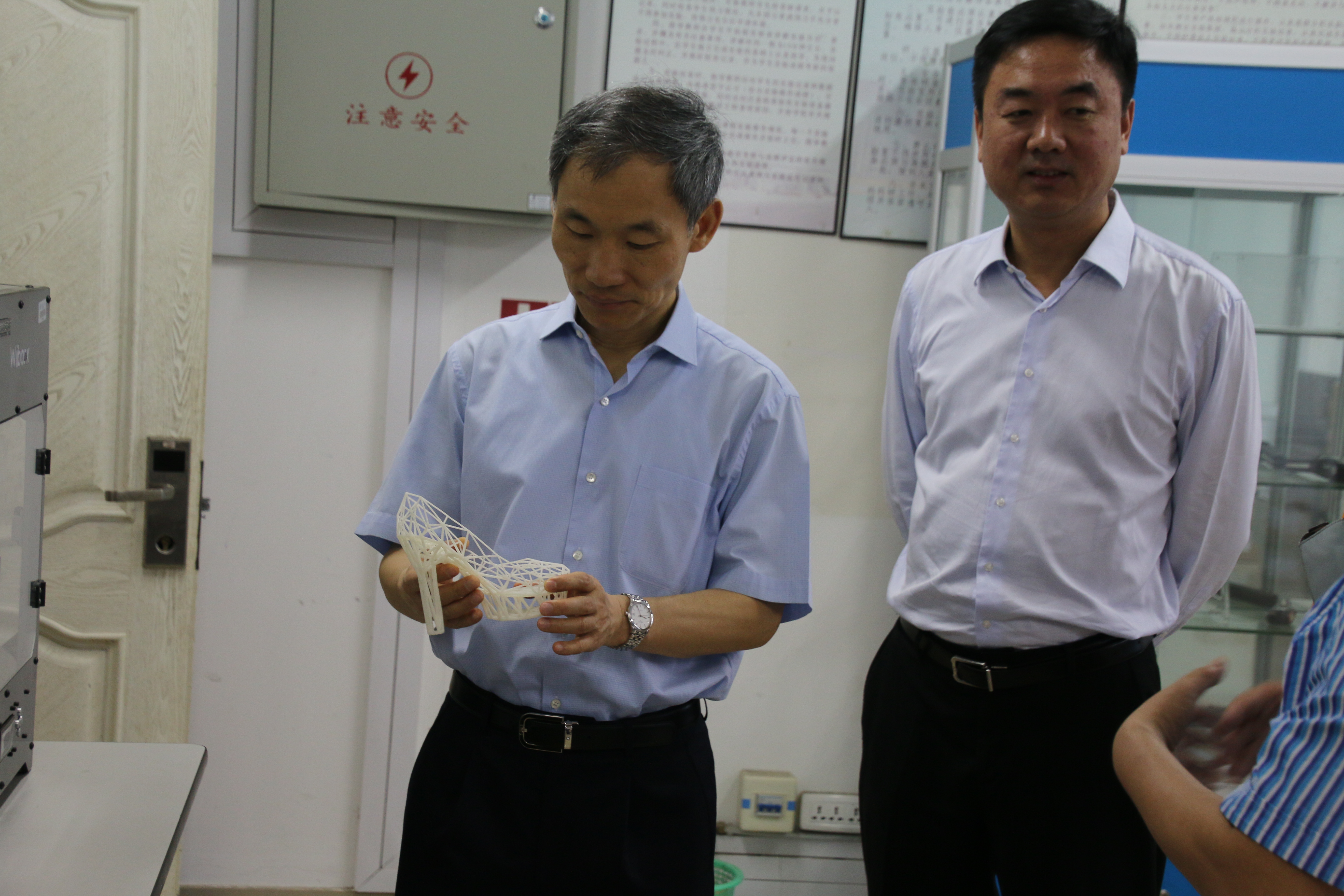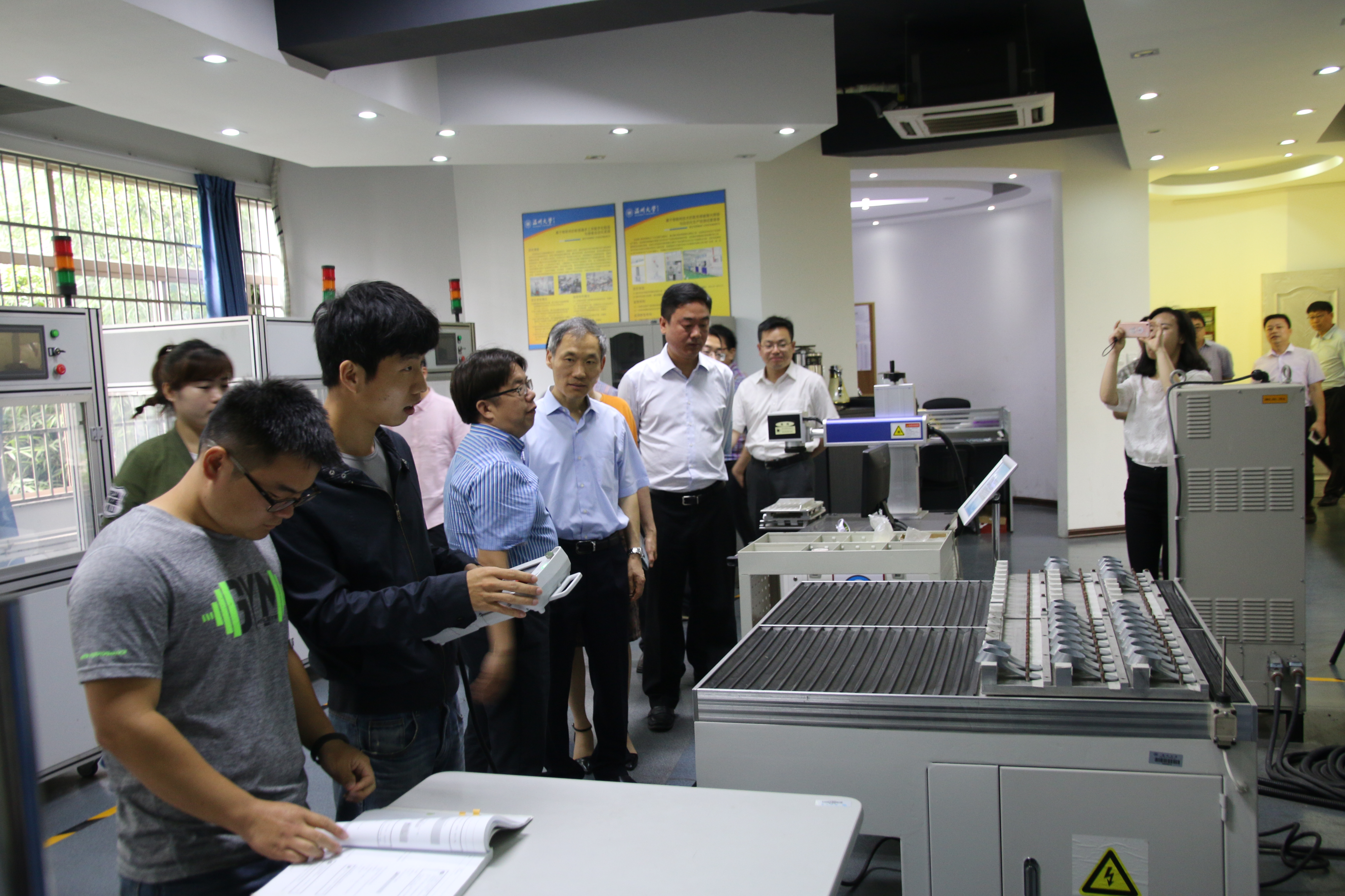 5月16日上午,温州市副市长殷志军一行来温州大学调研,到麻豆视频 考察激光加工机器人国际科技合作基地和浙江省激光加工机器人重点实验室,市科技局、卫计委、教育局等有关部门负责人陪同调研,学校党委书记林娟娟、副校长钱强陪同考察。