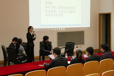 经过简历大赛的严格筛选,总共有40位选手入围初赛,模拟面试大赛初赛主要采用无领导小组面试,选手随机分为八个小组,每个小组抽取一道题目,有3分钟讨论时间和4分钟的总结发言时间。比赛开始后每组选手积极的展开讨论,台上场面十分热烈,评委与场下的观众全神贯注地听着。