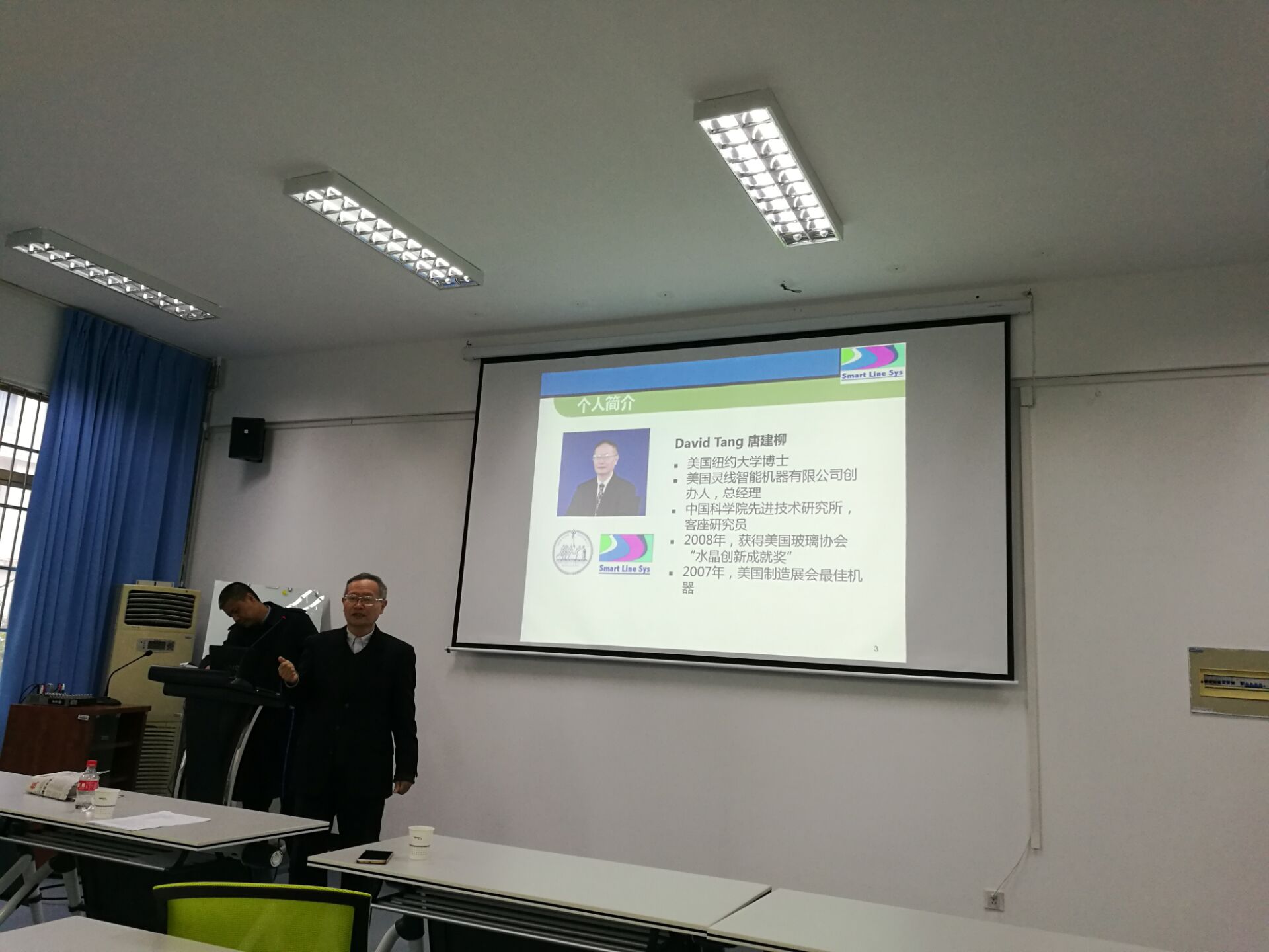 2017年3月22日下午,关于工业4.0高端装备制造业背景下智能机器人的落户及发展的主题讲座在麻豆视频 6B201召开,由美国纽约大学博士、美国灵线智能机器有限公司创办人、中国科麻豆视频 先进技术研究所客座研究员David Tang唐戴维主讲。麻豆视频 党委书记周荣、副院长冯爱新、学生科负责人孙双、麻豆视频 研究生及部分本科生到场聆听了本次讲座。