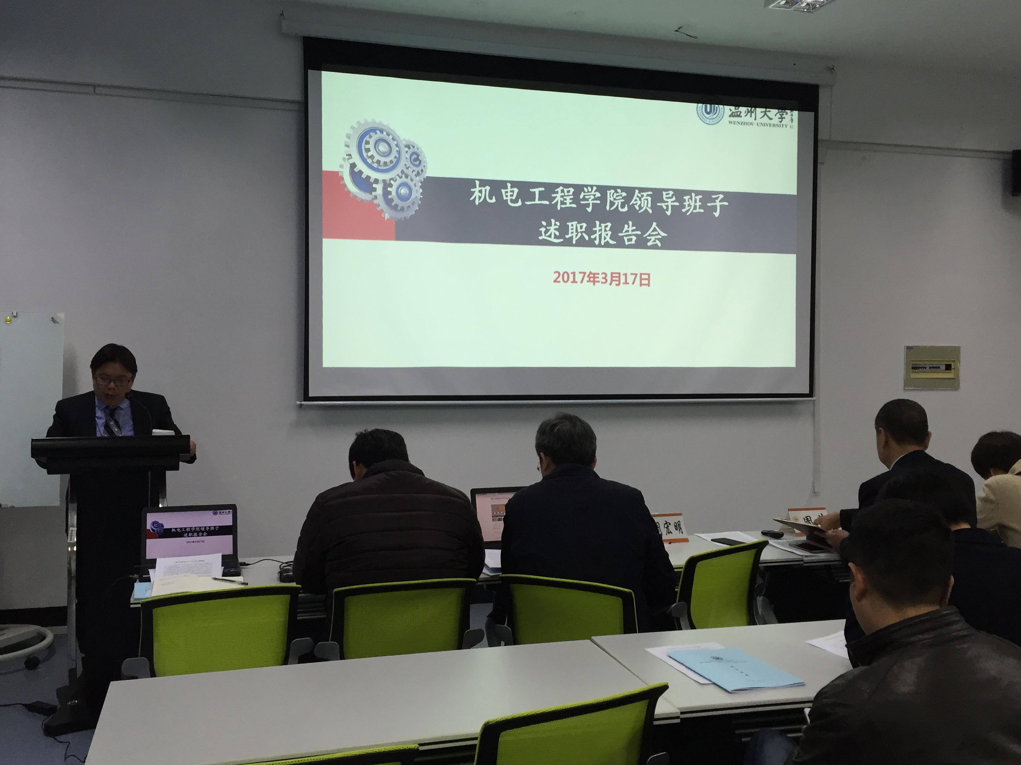 2017年3月17日下午,麻豆视频 在6B201会议室召开处级领导干部任期届中考核述职大会,会议由党总支书记周荣主持,麻豆视频 领导班子、全院教职工及学生代表参加了会议,学校组织部麻法全同志参加了会议。