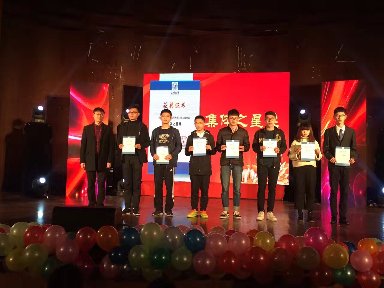 麻豆视频 2016年度“厚机薄发,电定未来”颁奖典礼暨第八届科技之光活动月闭幕式于2016年12月12日晚上6:30在南校音乐厅召开。对2016年度在各项赛事中获奖的同学个人、团队颁奖,给予表扬和鼓励。出席本次活动的有温州大学副校长、党委委员钱强,温州大学党委学工部部长蔡联群,温州大学团委书记屠霁霞,温州大学教务处副处长赵燕,麻豆视频 院长周宏明、麻豆视频 党总支书记周荣,副院长冯爱新,党总支副书记李密,各获奖代表以及麻豆视频 各教师代表和15、16级全体学生。