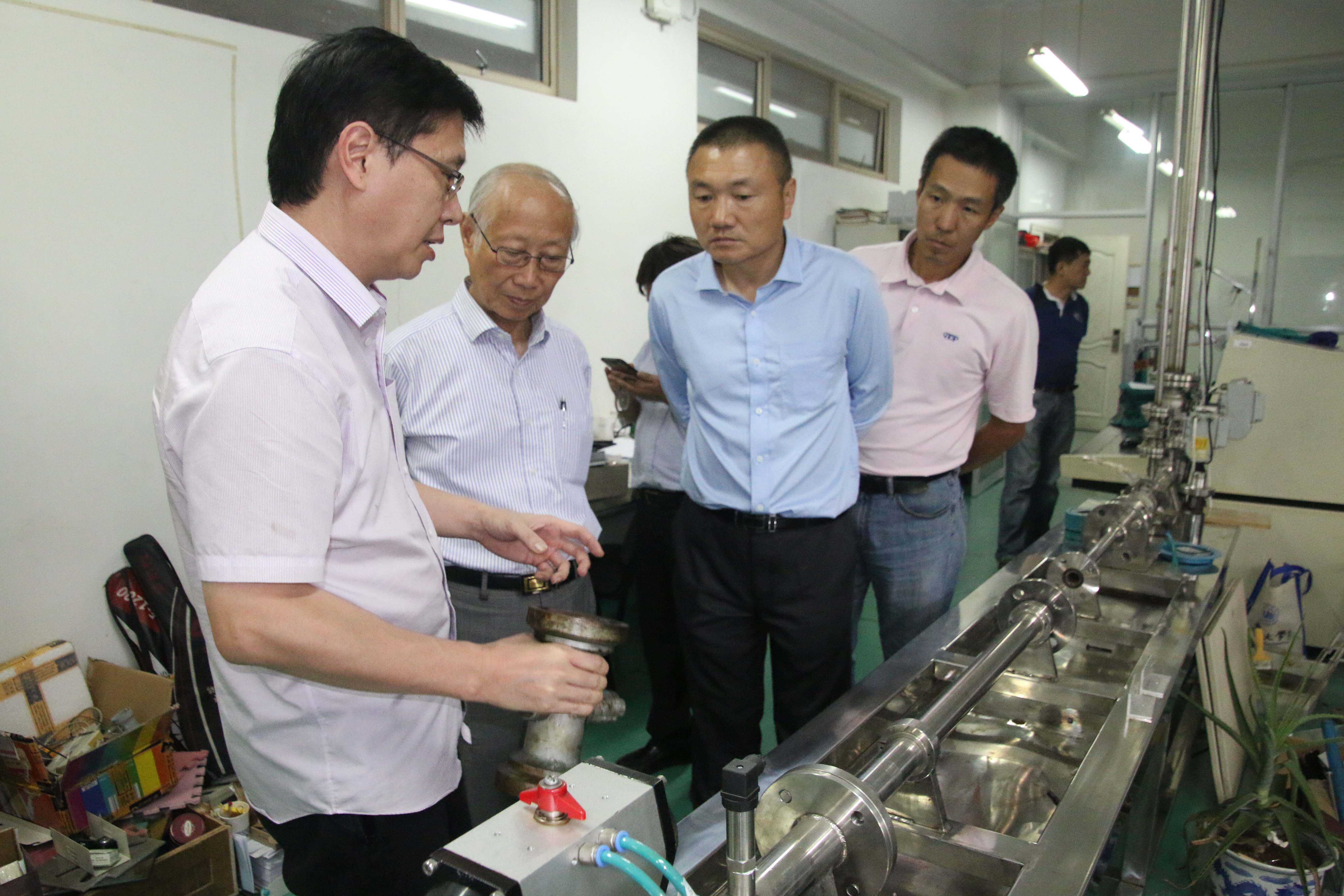 10月14日下午,国家制造强国建设战略咨询委员会委员朱森第、中国机械工业联合会副秘书长陈家良一行四人莅临麻豆视频-免费麻豆视频-台湾麻豆影片 参观。麻豆视频 院长周宏明、党总支书记周荣、实验中心常务副主任林礼区、国际科技合作基地办公室主任陈贤陪同。