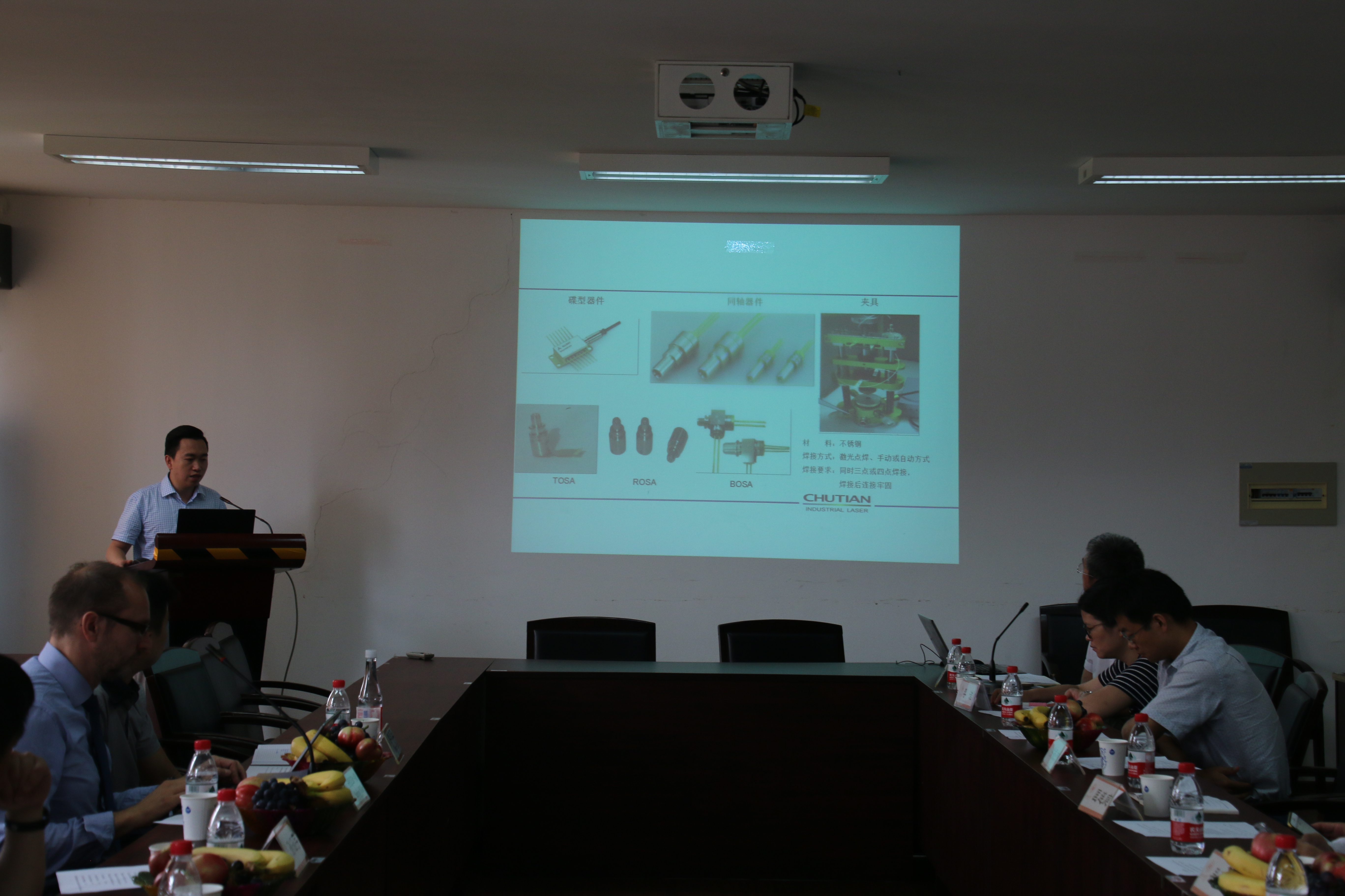 德国通快激光技术有限公司总经理Andreas Weller介绍了激光先进制造技术工程研究中心建设背景与思路,奔腾激光(温州)有限公司、武汉楚天工业激光的负责人介绍了激光先进制造技术应用市场开拓与校企合作模式基础,麻豆视频 李峰平副院长介绍了温州大学激光机工机器人浙江省重点实验室/科技部国际合作基地的研发工作基础。