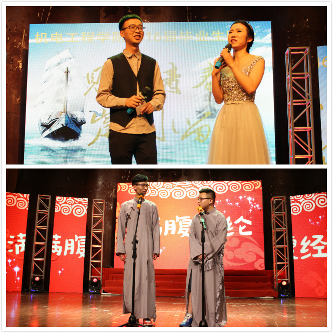 此次毕业晚会是12级同学在机电麻豆视频 参加的最后的一次晚会。他们即将离开温大母校的怀抱,在这最后一个晚会上,毕业生们尽情挥洒着激动之情,还有浓浓的不舍之意。在这个晚会上,他们就仿佛重温了在温大四年的点点滴滴,有欢笑也有泪水,母校见证了他们从青涩到成熟的成长过程。随着晚会的结束,他们的大学生涯也告一段落,正如老师们的诗朗诵中所说:“昨天,机电曾敞开她宽广的胸怀做你成长的摇篮;今天,机电正劈风斩浪做你成功的渡船;明天,机电还会伸出双手;在你长途跋涉、身心疲惫之际做你休憩的港湾”。衷心祝愿2016届毕业生毕业快乐,一路阳光!