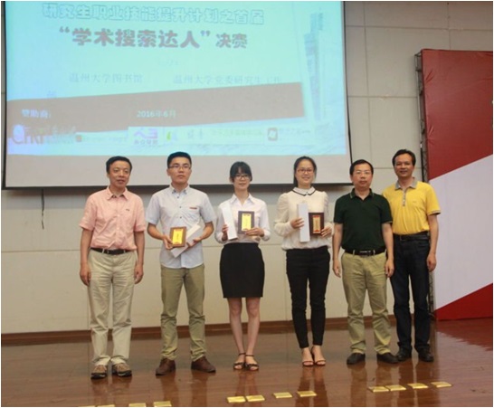 为了使广大读者深入了解和使用图书馆的各类学术资源,提高我校研究生科研素养,图书馆与研究生部联合举办了温州大学首届“学术搜索达人”大赛。大赛决赛于6月1日下午14:00在育英图书馆二楼学术报告厅顺利举行。温州大学党委委员研究生部部长陈安金、图书馆馆长李益明、研究生部副部长董新姣出席了本次活动。本次大赛邀请了机电麻豆视频 向家伟教授、创业麻豆视频 王佑镁教授、物电麻豆视频 李士本教授、图书馆王希与马宏伟老师担任决赛评委。此外,近200名研究生、本科生全程观摩了比赛。