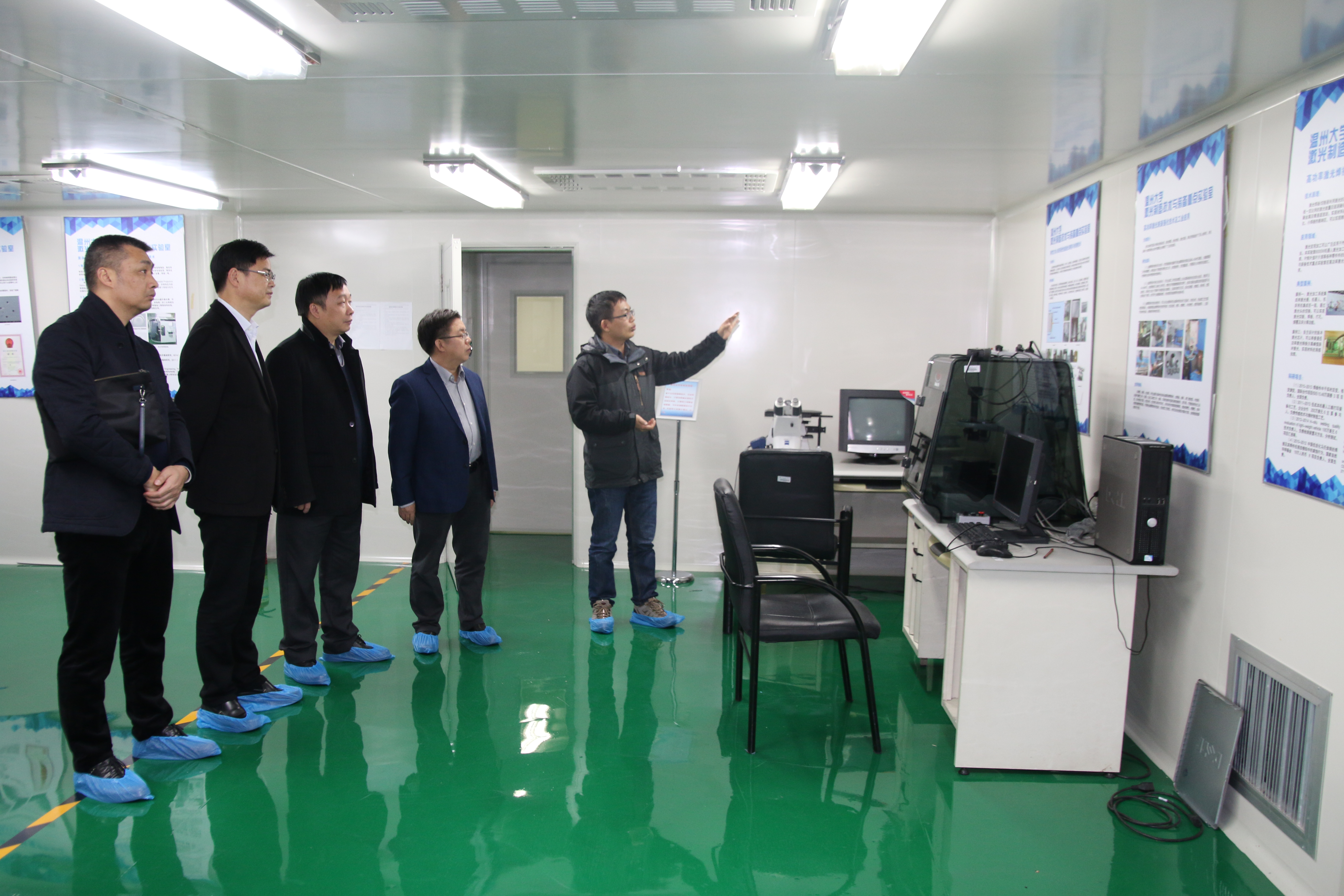 2015年12月25日上午,温州高新技术产业开发区管委会主任陈应许一行来麻豆视频-免费麻豆视频-台湾麻豆影片 参观浙江省激光加工机器人重点实验室并开展调研活动。副校长赵敏、党校办主任王定福、麻豆视频 领导陪同参观,周宏明院长全程讲解。