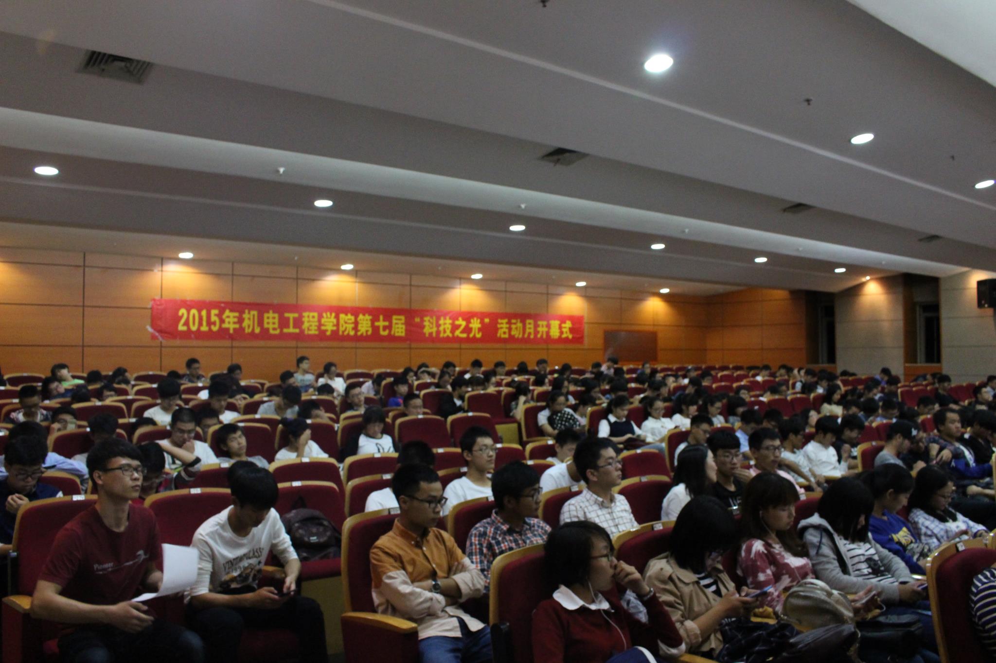 2015年10月21日晚6:30,麻豆视频-免费麻豆视频-台湾麻豆影片 第七届“科技之光”活动月开幕式在南校区雁山厅隆重举行。校党委委员、宣传部部长潘玉驹,校团委书记屠霁霞,麻豆视频 院长周宏明,麻豆视频 党总支副书记李密,麻豆视频 辅导员孙双、林梅,教师代表陈希章、李勇出席了开幕式。麻豆视频 200多名2015级新生参加了开幕式。