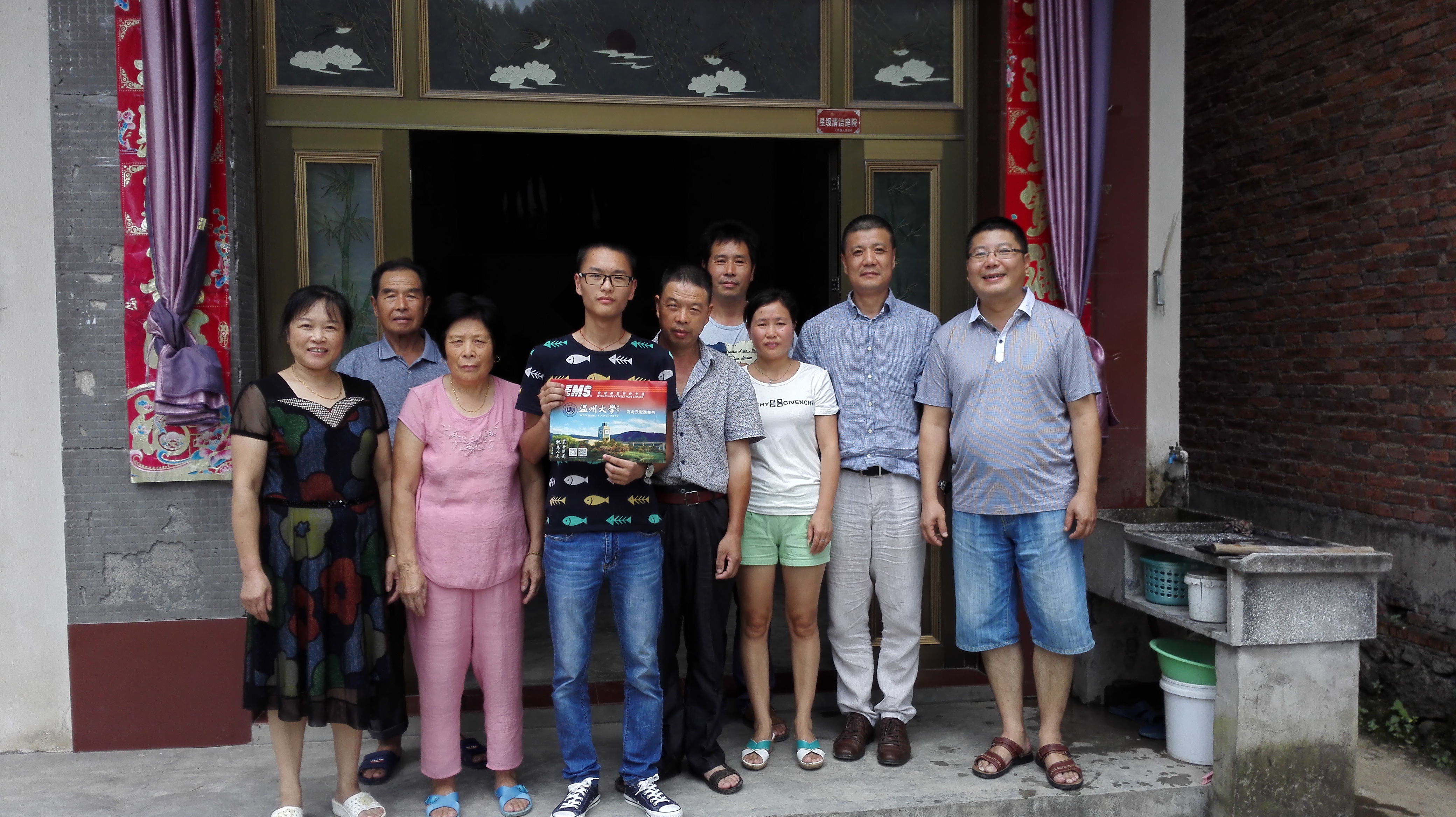7月25日,周宏明院长、朱德华老师一行前往浙江省武义县,亲自给麻豆视频-免费麻豆视频-台湾麻豆影片 2015年录取的卓工班学生朱孜轶、王镇涵送上温州大学录取通知书。同一天,周荣书记、瞿建武老师也出发了,他们辗转一天,赶到建德市大同镇禹甸村考生王忠孝的家,为学生送上了鲜红的录取通知书。对于麻豆视频 院长书记亲自送录取通知书到家,新生们觉得既意外又兴奋,感受到了学校、麻豆视频 的浓浓真情。