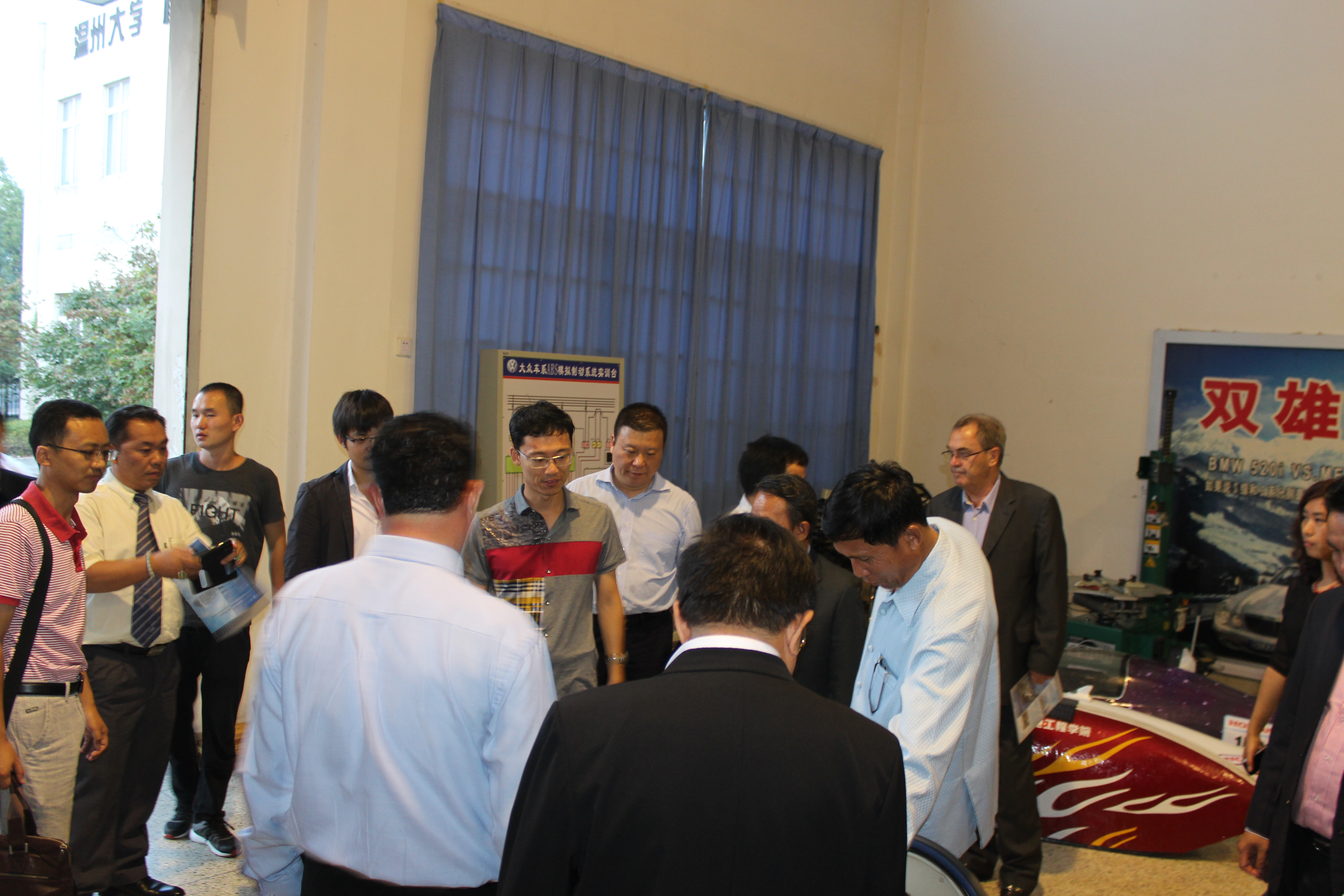 老挝学校代表团首先参观了麻豆视频-免费麻豆视频-台湾麻豆影片 汽车服务工程实验室。汽车服务工程教研室主任周斯加博士向来访人员介绍了汽车工程专业的实验室建设和人才培养情况。随后,老挝学校代表团参观了麻豆视频-免费麻豆视频-台湾麻豆影片 工程训练中心,详细了解了工程训练中心的软硬件设施和运行情况。
