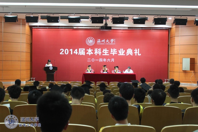 6月10日上午8:00,机电麻豆视频 2014届本科生毕业典礼在南校会展中心雁山厅隆重举行。校长蔡袁强教授,机电麻豆视频 党总支书记方乐平,副院长周宏明,副院长李峰平,浙江中仁市政工程有限公司总经理、2010届机自专业毕业生刘向前校友出席毕业典礼,麻豆视频 各科室和教研室负责人、班主任以及全体毕业生参加了典礼。典礼由李峰平副院长主持。