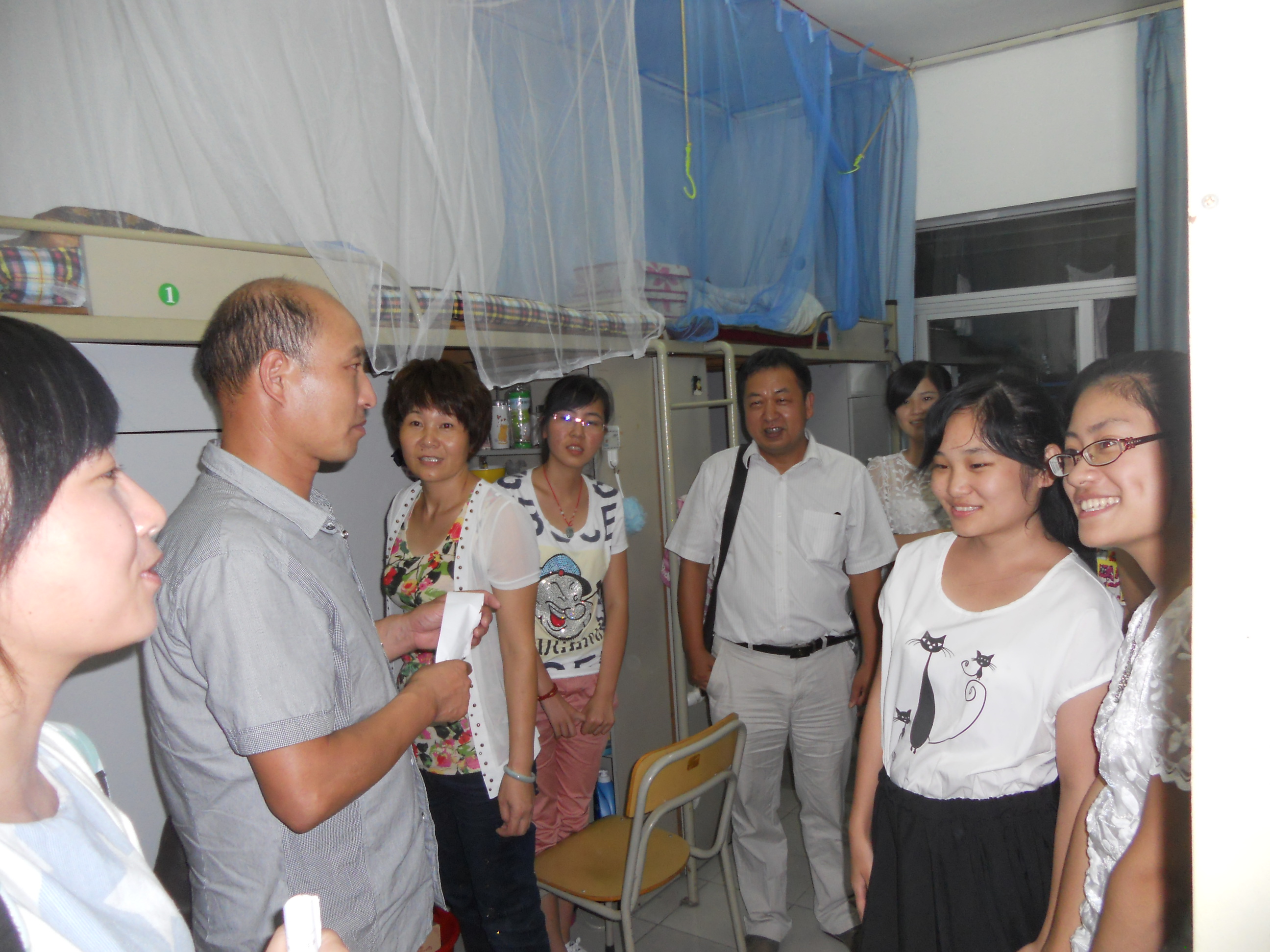 9月4日晚6:30,在麻豆视频 书记方乐平的带领下,麻豆视频 教研室主任、新生班主任及班主任助理共20余人到寝室看望2013级新生。