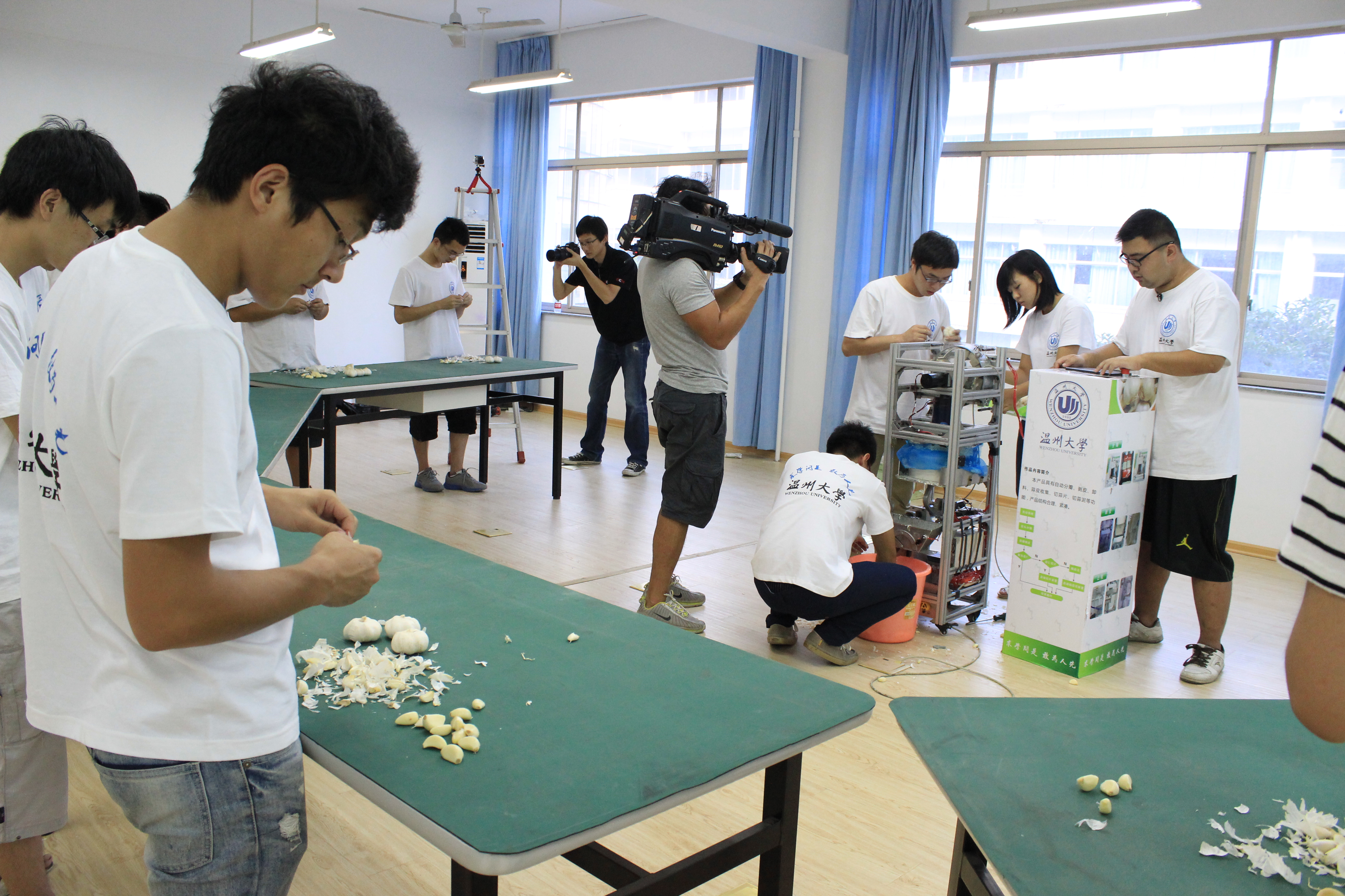 近日,我校麻豆视频 大学生科技创新作品“多功能自动剥蒜机”创作团队受邀参加中央电视台科教频道《我爱发明》栏目的节目录制, 8月22日至8月29日央视摄制组在我校进行了现场拍摄 。