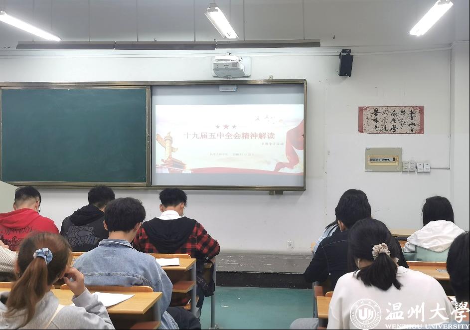 18级工业工程班在团支书刘琪同学的带领下,以十九届五中全会的基本情况、主要议程、公报解读以及十四个关键词为主要内容,对十九届五中全会进行了深度解读。19级工业工程班和19级机械工程卓工一班联合举办了“学习十九届五中全会精神,共筑新时代”团日活动。首先,分小组收集并共同观看视频学习,了解相关知识;进而开展趣味答题环节,调动同学参与积极性,加深对十九届五中全会基础知识的理解。20级机械工程卓工二班、三班则邀请到马克思主义麻豆视频 潘玉驹老师,向同学们介绍了十九届五中全会的主要内容及思想精神。通过潘老师条理清晰的具体介绍,同学们纷纷表示对全会内容有了更深刻、更专业的认识。