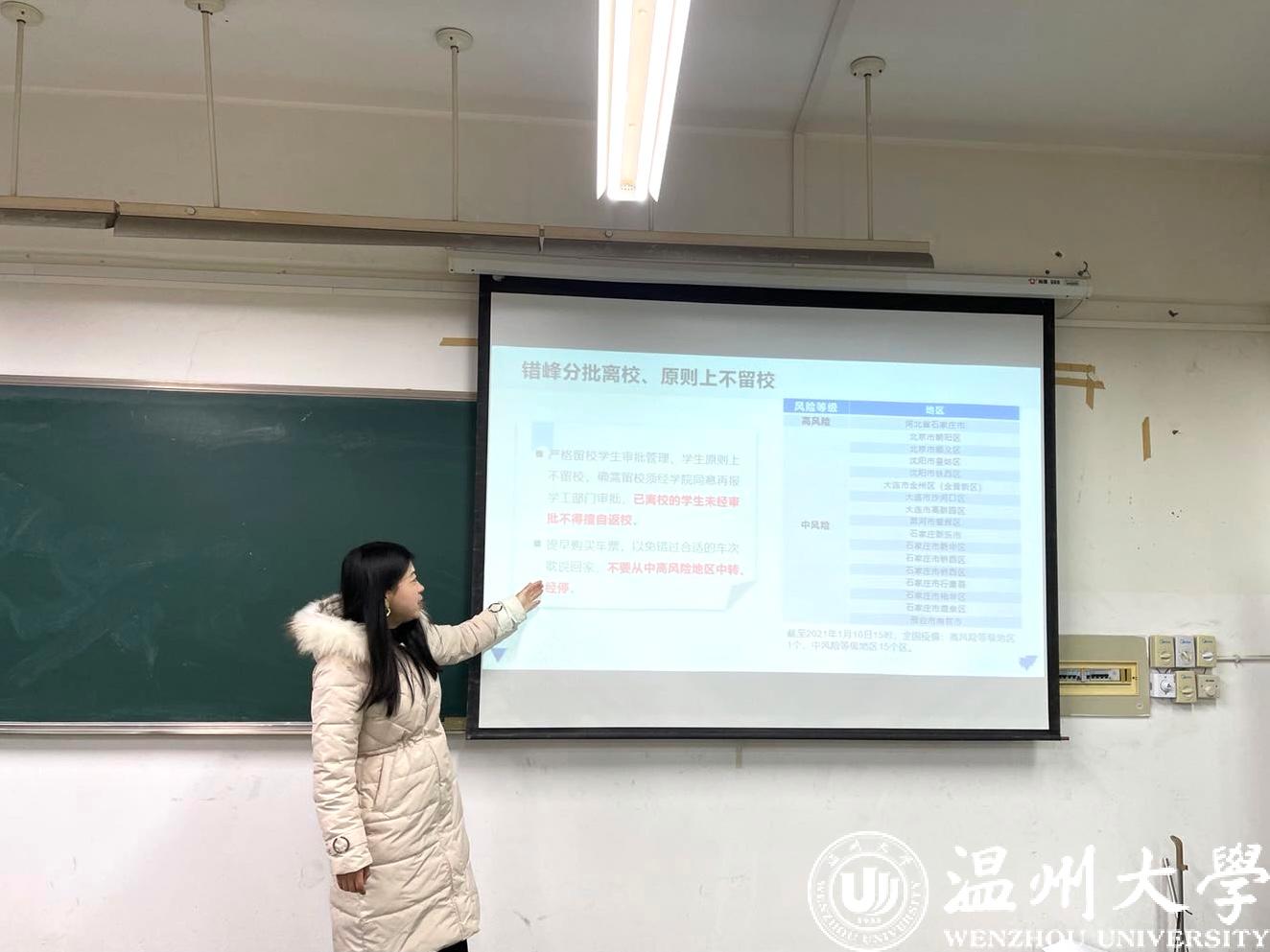 假期即将来临,为了让麻豆视频 全体同学度过一个快乐、安全的寒假。各班级班主任以及全体辅导员于2021年1月11日和2021年1月12日两日分批次的为全体学生召开了2021年离校前安全教育主题班会。