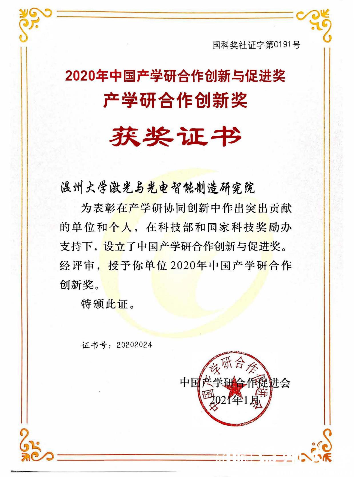 系统谋划,打造区域创新引擎:温州大学激光与光电智能制造研究院荣获产学研合作创新单位奖