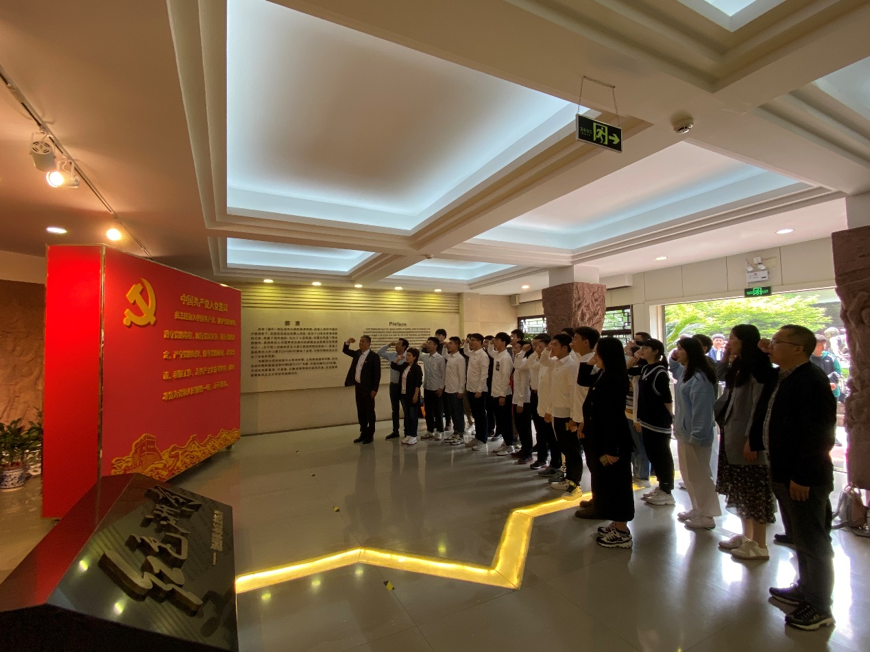 大家走进温州革命历史纪念馆,在麻豆视频 党委书记周荣的带领下,全体党员同志重温入党誓词。一字一句,回顾中国共产党人的初心使命,重温入党初衷。