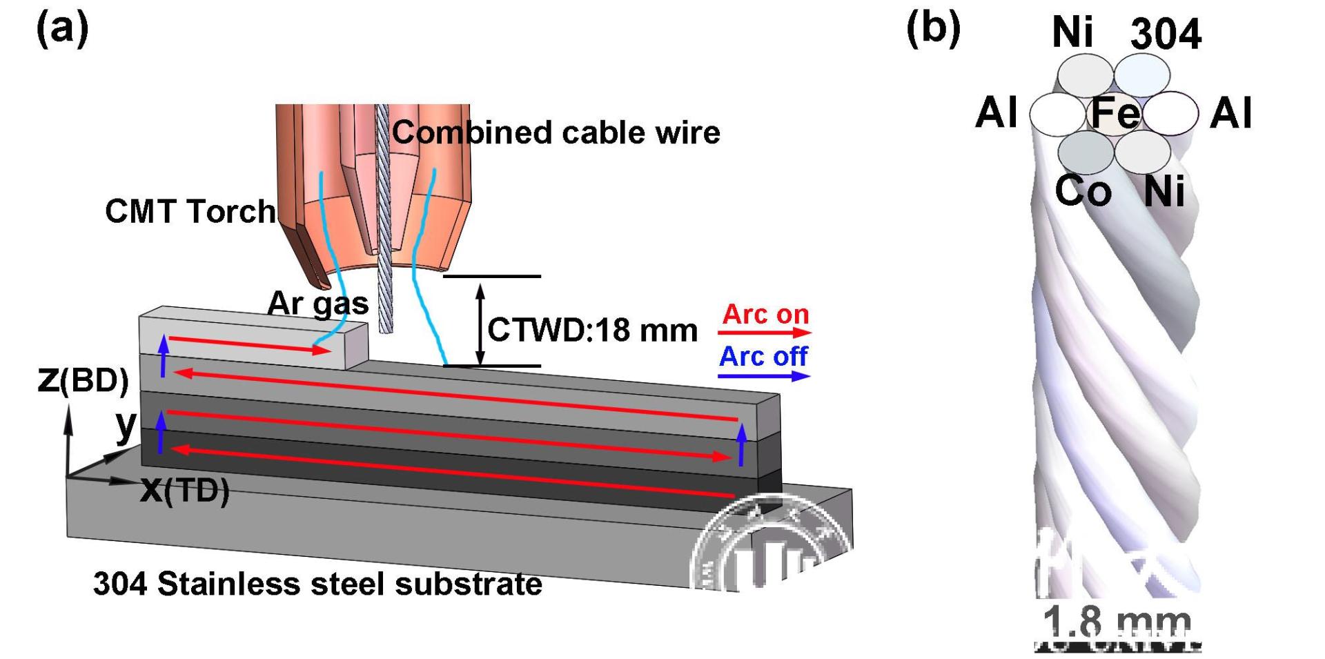 近日,麻豆视频-免费麻豆视频-台湾麻豆影片 研究生沈晴凯等人在陈希章教授的指导下完成的科研论文“Fabrication of bulk Al-Co-Cr-Fe-Ni high-entropy alloy using combined cable wire arc additive manufacturing (CCW-AAM): Microstructure and mechanical properties”在国际著名工程技术TOP期刊《Journal of Materials Science & Technology》(IF=6.155)上发表,并被遴选为封面论文。该论文提出了一种采用新型绞丝进行高熵合金电弧增材制造的方法,为大尺寸和复杂形状高熵合金材料及产品的制造提供了一种高效高质有前景的制造方法,制造的Al-Co-Cr-Fe-Ni高熵合金达到强度2.8GPa和塑性42%的优异结合。该方法突破后,系列成果陆续发表在JOURNAL OF ALLOYS AND COMPOUNDS、MATERIALS SCIENCE AND ENGINEERING A等工程技术TOP期刊发表。