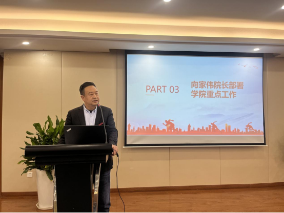 姜锐副院长就分管的专业建设、课程建设、实验室管理、学科竞赛等工作进行部署。李勇副院长对“十大项目”进行介绍,并部署三月份学科工作。黄玮副书记对分管的学生工作、考研及就业等工作进行部署。平阳智能制造研究院副院长陈贤对研究院创新服务综合体专项研发项目进行了介绍。