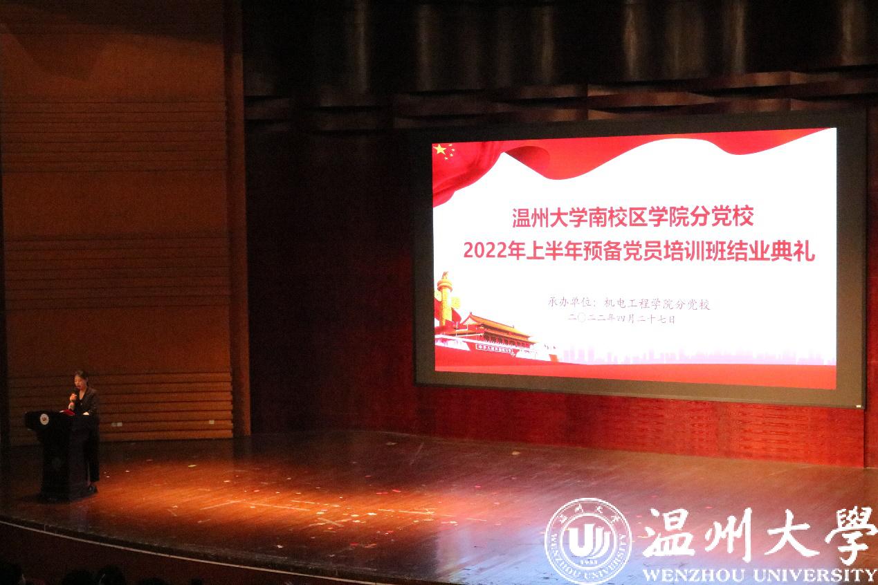 温州大学2022年上半年南校区预备党员培训班(联合)的各项工作接近尾声,为及时总结经验,表彰先进,2022年4月27日下午,分党校于南校音乐厅举办结业典礼。麻豆视频 党委副书记、分党校副校长黄玮老师,美术与设计麻豆视频 党委副书记、分党校副校长叶如芳老师,麻豆视频 学工办主任杨奇老师以及本次培训的358名预备党员出席本次结业典礼。