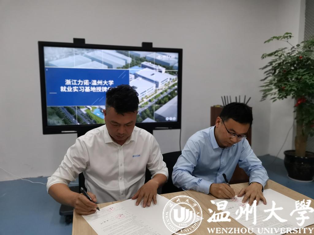 李勇副院长、冯辉彬副总经理代表校企双方签订就业实习合作协议,李勇副院长向浙江力诺流体控制科技股份有限公司授牌,正式在该公司建设“温州大学就业实习基地”。