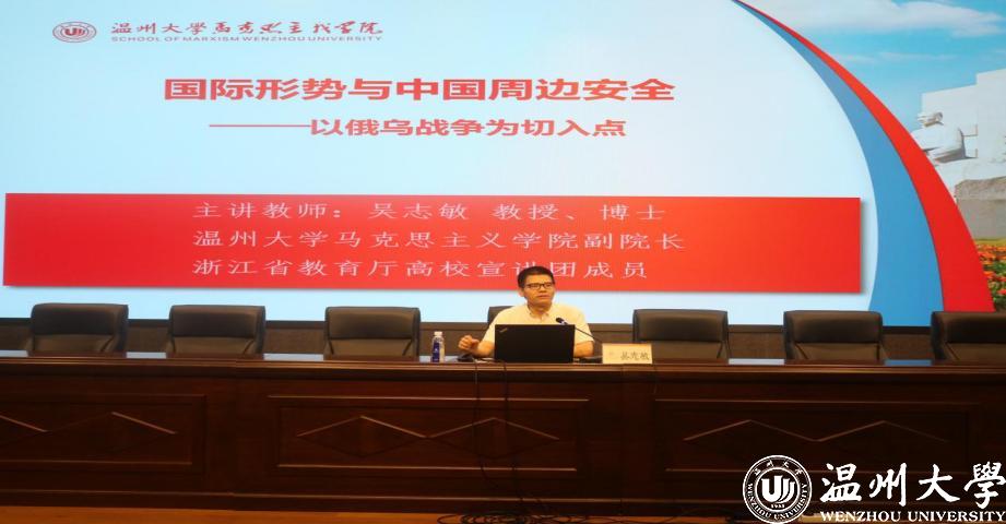 6月9日,麻豆视频-免费麻豆视频-台湾麻豆影片 邀请马克思主义麻豆视频 副院长吴志敏教授为21级本科生做了主题为《国际形势与中国周边安全——以俄乌战争为切入点》的讲座。