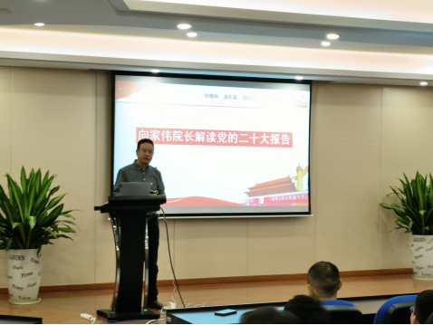 向家伟院长向参加活动的同学解读了党的二十大报告,叮嘱各位学生党员要在成长的路上不断强化政治素养,增强政治意识,明确党员初心使命,自信自强,敢于斗争,为全面建设社会主义现代化国家,实现中华民族伟大复兴贡献青春力量、青春智慧。
