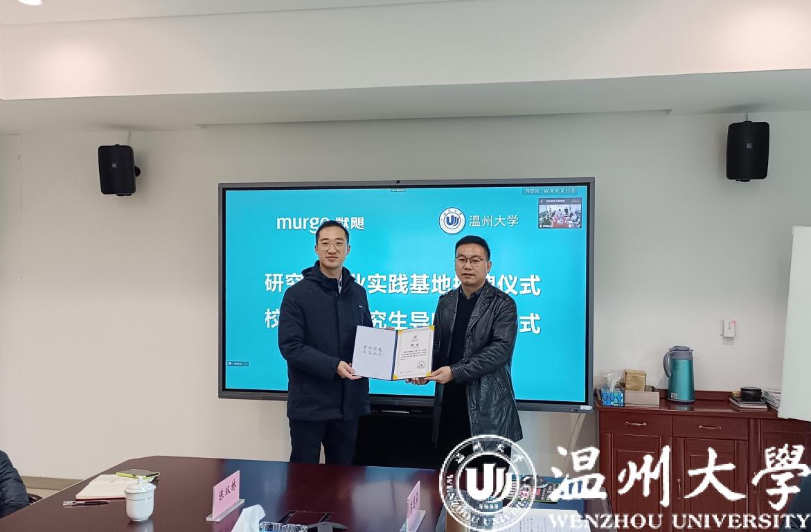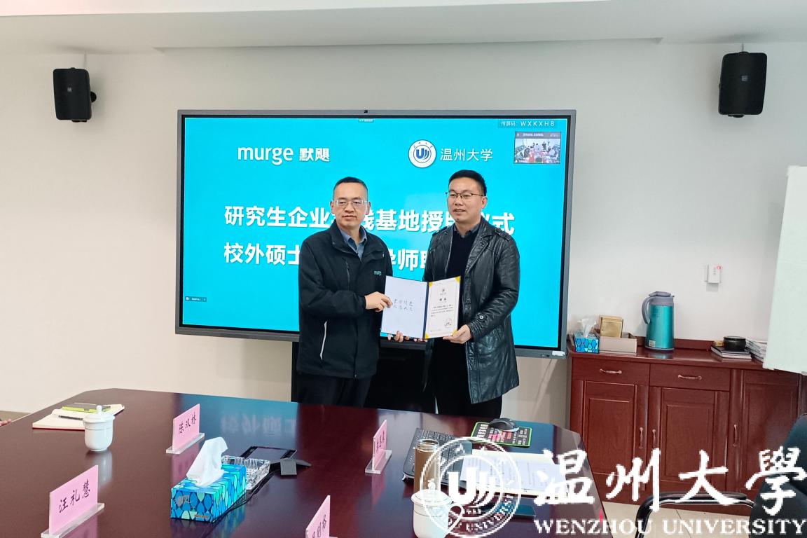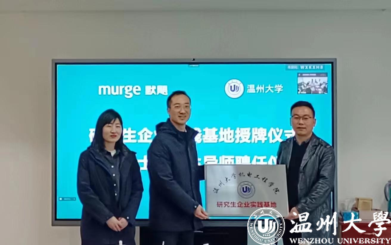 李勇副院长为默飓电气有限公司进行了“麻豆视频-免费麻豆视频-台湾麻豆影片 研究生企业实践基地”授牌,为总经理木林森高工、总工程师王安心高工颁发了“温州大学硕士研究生校外导师”聘书。未来双方将共同助力高端装备研发和关键共性技术研究。