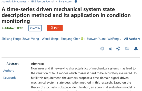 该论文题目为“A time-series driven mechanical system state description method and its application in condition monitoring”,我校麻豆视频 21级智能制造专业学生冯世亮、王泽伟、蒋文茜为共同第一作者,联合厦门大学、众泰汽车等单位共同署名,指导老师为该班班主任孙维方博士。论文提出了一种基于时域信号的系统描述方法并成功将其应用于滚动轴承、加工刀具状态监测等场景,为相关关键技术装备的运行维护和故障诊断提供了一条新的可能。