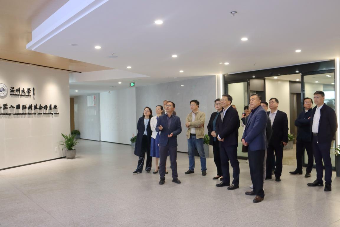 2023年4月12日上午,浙江省人大常委会委员、教科文卫委员会主任委员陈根芳一行莅临激光加工机器人国际科技合作基地调研,温州市人大常委会副主任徐育斐等陪同调研。温州大学副校长徐和昆、蔡曙光,激光基地主任薛伟及相关人员出席接待。