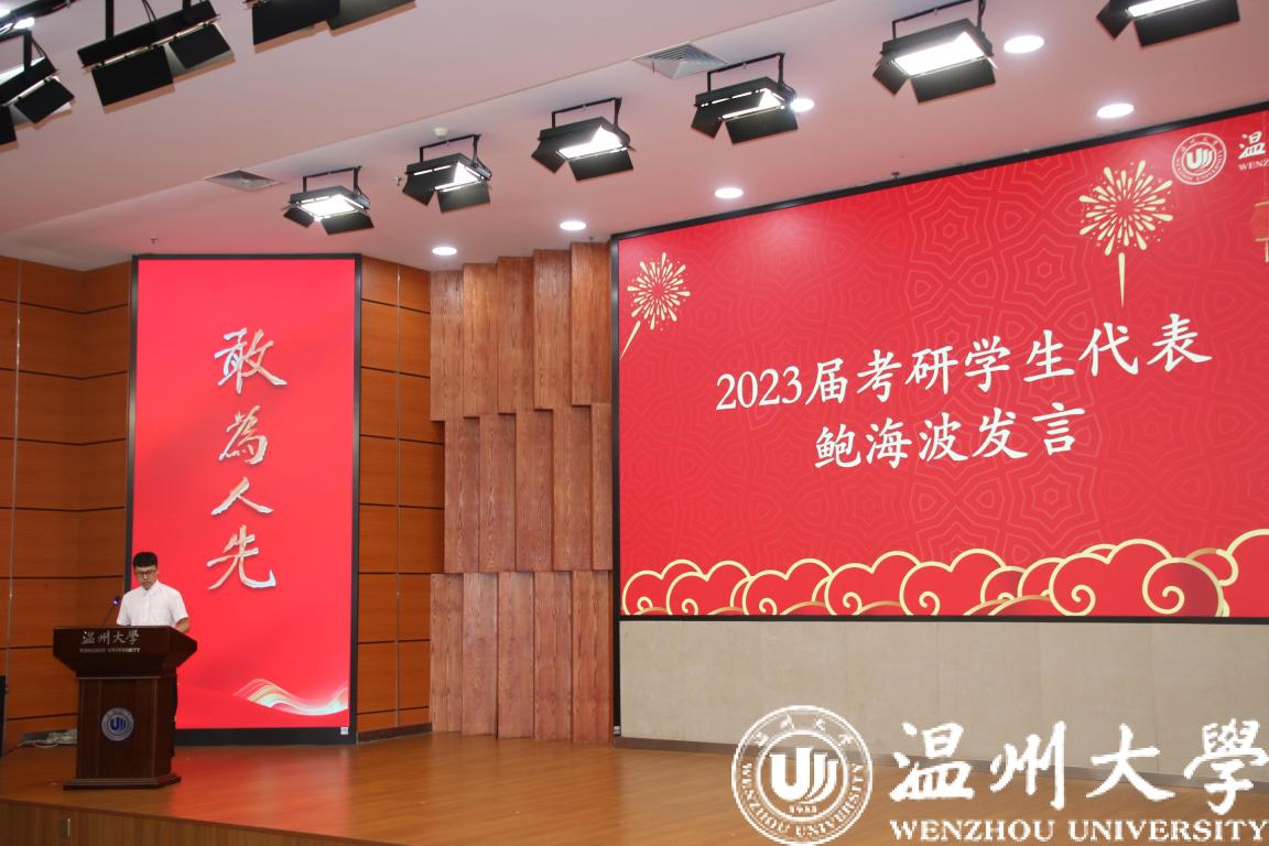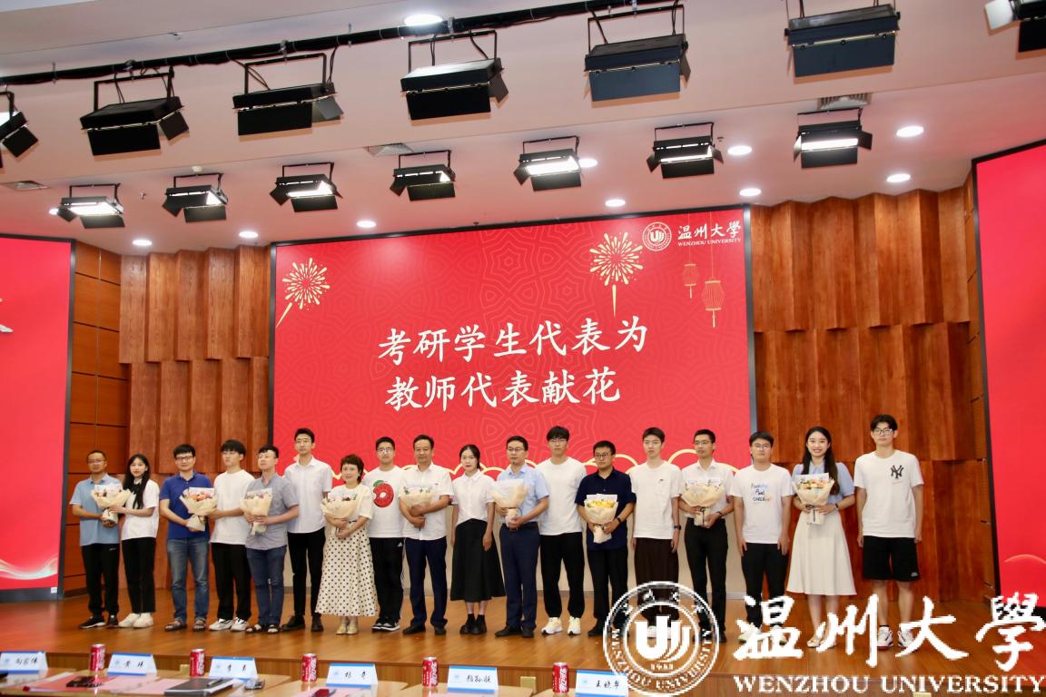 2023届考研学生代表鲍海波进行考研总结,他首先代表广大考研学子向麻豆视频 及老师们表达感谢,并表示正是因为有麻豆视频 的大力支持以及老师们的默默付出,2023届考研学子才能取得如此优异的成绩;同时,他回顾了一年以来的考研之路,经历了无数次的崩溃与泪水,研路带来的是品性的坚毅,言行的坚定,内心的无畏。机电学子必将继续努力,不断奋进,未来在自身领域取得更耀眼的成绩。随后,考研学生代表们向老师们献花,感恩研途中老师们的耐心教导与关怀备至。