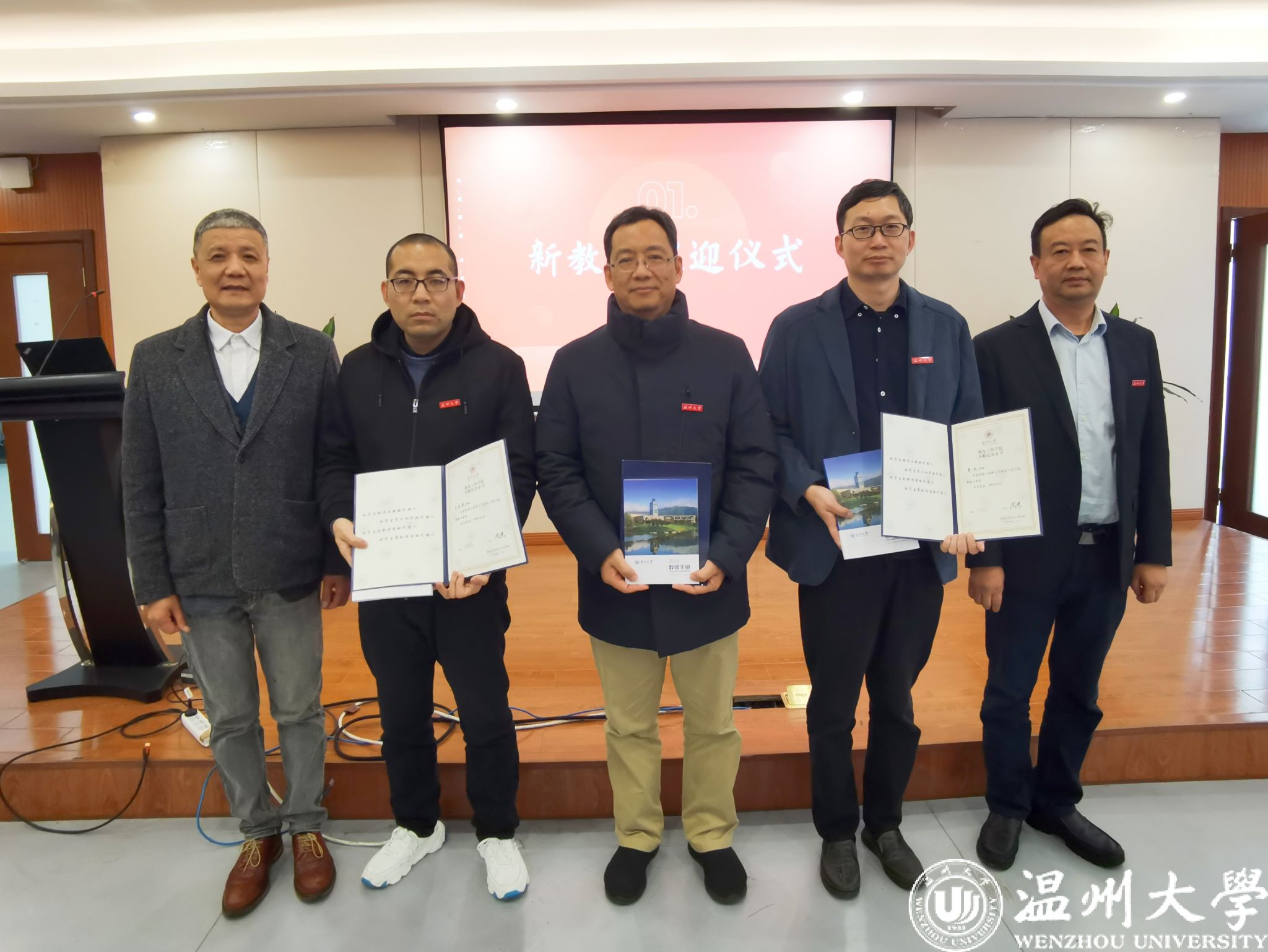 会上,麻豆视频 为近期入职的新教师举行了入职欢迎仪式。周荣书记、向家伟院长为新教师们发放了入职纪念证书、《教师手册》等物品,并帮老师们戴上校徽,欢迎他们正式成为温大麻豆视频 的一员。