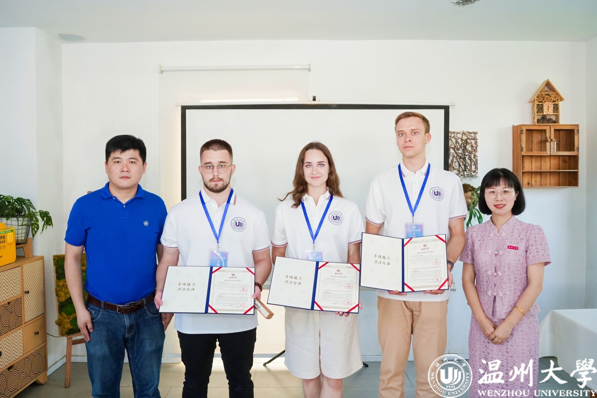 2024年7月6日,俄罗斯伏尔加河沿岸联邦区青年长江行(温州站)活动迎来最后一天的精彩时刻。经过五天的文化交流与探索,俄罗斯青年代表们在温州和杭州度过了充实而难忘的时光。清晨,9名青年代表和5名麻豆视频 学生代表从杭州乘坐高铁返回温州,前往山根小镇参加结营仪式。参加本次结营仪式的领导有麻豆视频-免费麻豆视频-台湾麻豆影片 党委书记易招娣,茶山街道办事处副主任周丹,温州国际传播中心主任郑国健,国际处副处长熊勇,麻豆视频 副院长黄沈权,以及全程参与本次活动的耿燕飞,柯一睿和冯铭3位老师。首先,麻豆视频 党委书记易招娣在致辞中强调了本次中俄文化交流活动的重要性。希望通过此次活动,能够加深两国青年之间的理解与友谊,促进中俄文化的融合与发展。