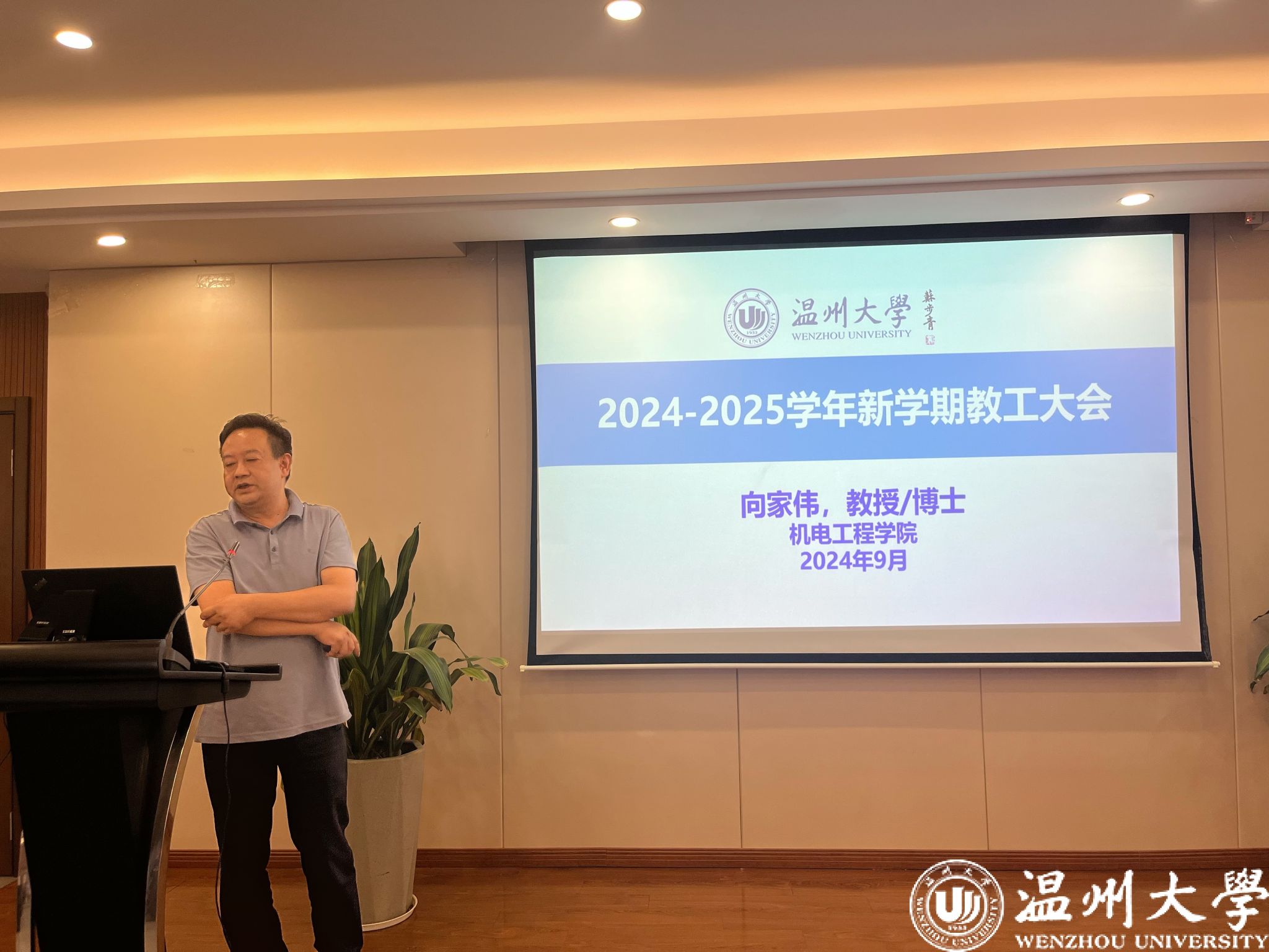 向家伟院长作麻豆视频 新学期重点工作部署。他回顾了暑期麻豆视频 在制度规范化建设、实验室搬迁、博士点和浙江省重点实验室申报等方面工作,广大教职工“有暑无假”奋战在教学科研一线,为麻豆视频 学科专业建设与人才培养水平贡献力量,展现了新时代机电人担当作为、良好工作风貌。面对新的发展任务,他着重就科研项目申报、学科建设、人才培养等方面工作进行了部署,强调全体教职工工作要有勇攀高峰勇气,凝心聚力、团结协作共同排除万难、加油工作、健康生活,为麻豆视频 各项工作迈上新台阶、取得新成效、实现新突破贡献智慧和力量。