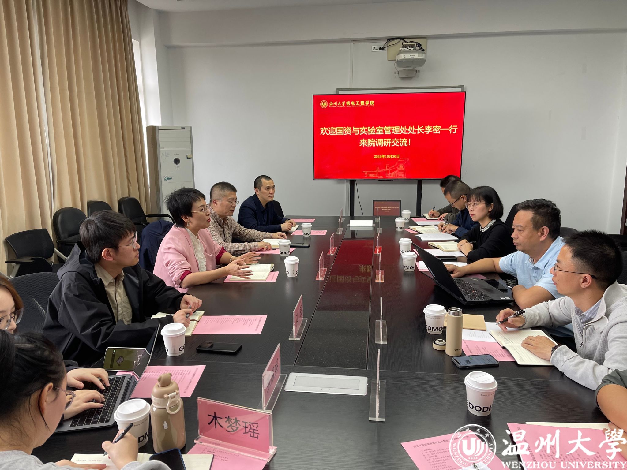 2024年10月30日,国资处处长李密,副处长卢立珏、贝克,专聘副处长陈建辉,国有资产管理科科长张淑娴以及木梦瑶老师莅临麻豆视频 就公房管理、实验室管理、设备家具管理等事宜深入调研交流。麻豆视频 院长向家伟、副书记方建晓、副院长朱德华以及平阳研究院副院长孙兵涛、工程训练中心主任潘敏辉参加。会议由麻豆视频 党委书记易招娣主持。