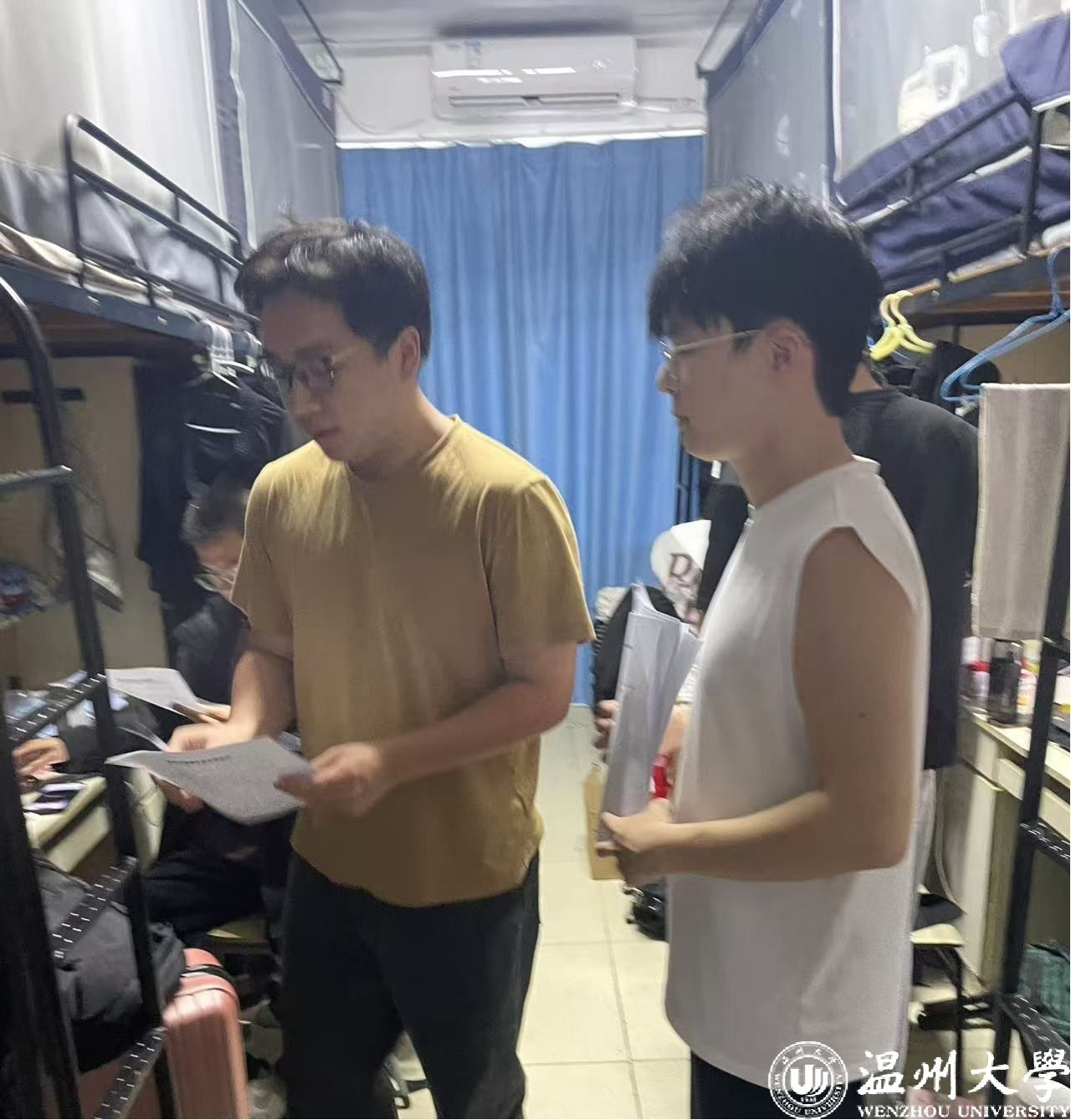 同时,在现场各负责老师与各寝室介绍校园防诈工作、提醒大家注意保护人身安全、财产安全,现场与各寝室成员签订防诈承诺书。此次检查坚持全覆盖、不走过场的原则,确保每一间宿舍都得到认真对待。
